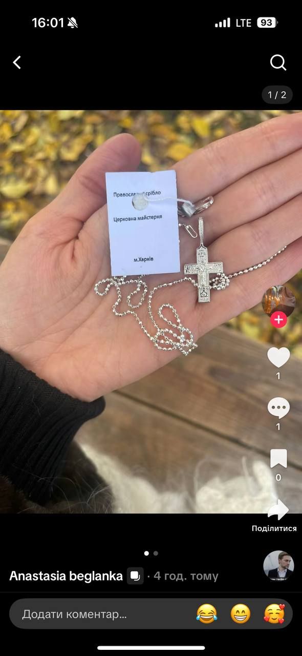 Через кілька годин Анастасія Кускевич прикріпила фото купленого хрестика з біркою, де зазначено «Православне срібло. Церковна майстерня. м. Харків», та фото свічок у храмі, що наштовхує на думку про її перебування у Харкові.