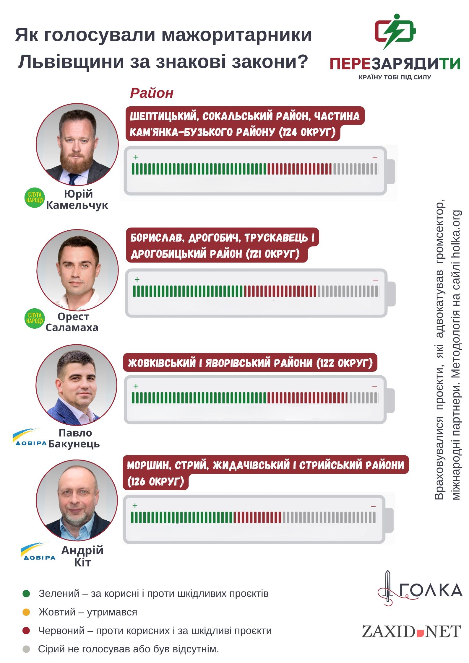 ZAXID.NET проаналізував голосування народних депутатів з Львівщини, як мажоритарників, так і списочників, на основі даних інструменту «Перезарядити країну тобі під силу» громадської ініціативи «Голка».