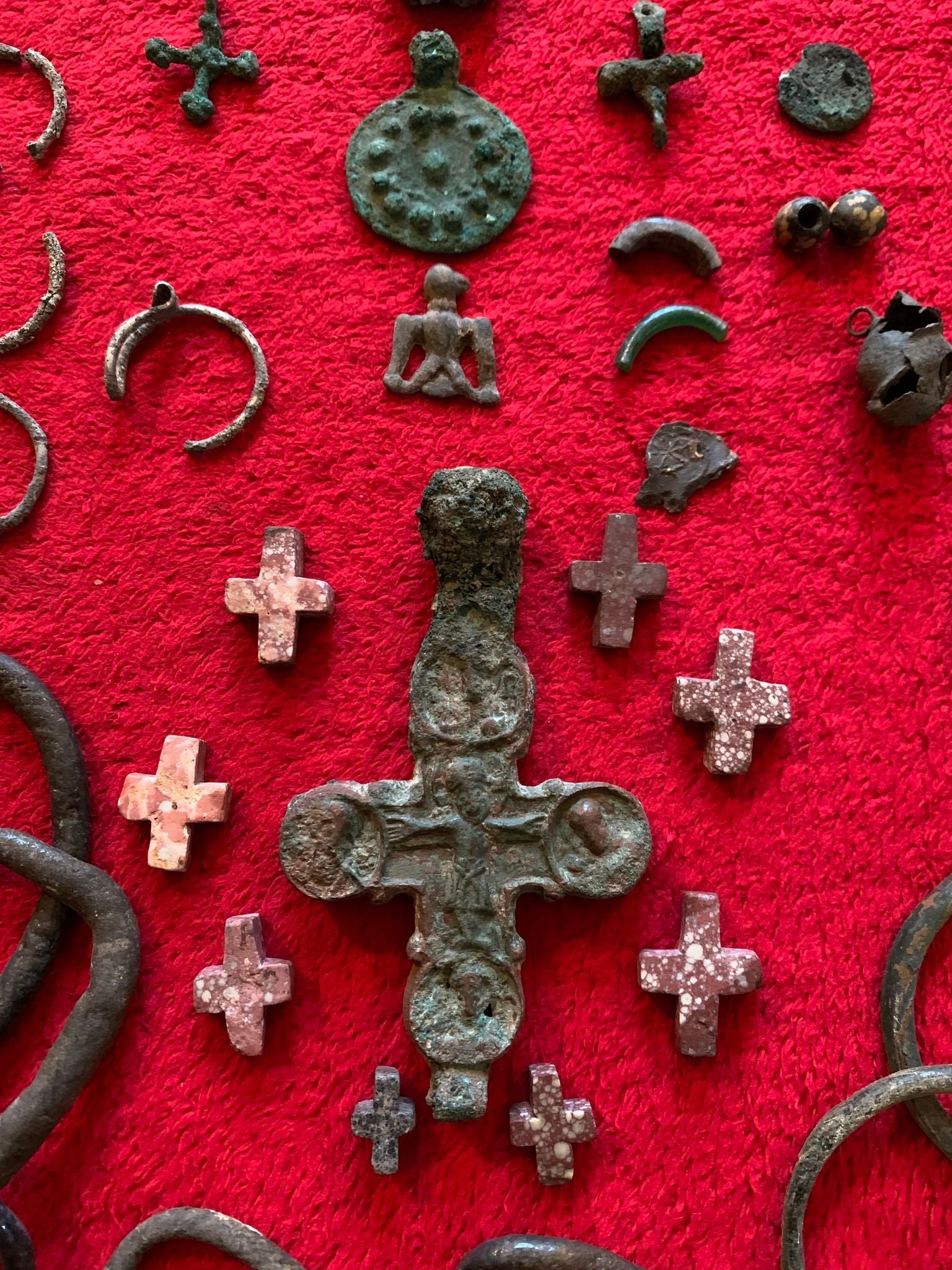 - 9 бронзових та 8 мармурових невеликих натільних хрестиків;