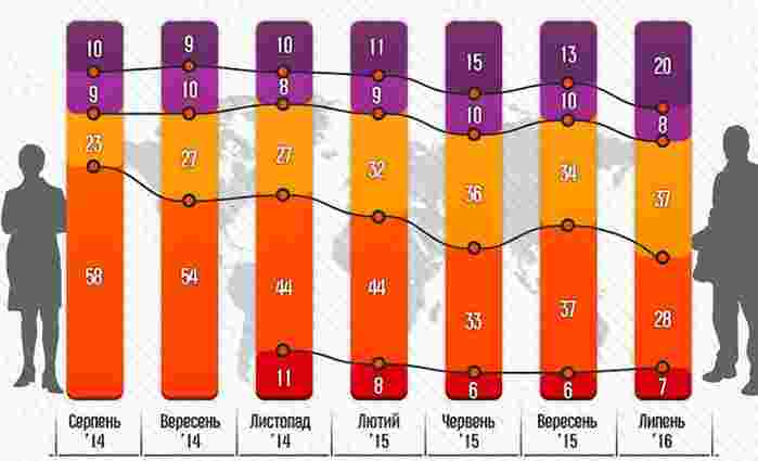 Зауважимо, що опитування проводилось методом онлайн-опитування з 16 по 21 липня 2016 року на всій території України (крім тимчасово окупованого Криму).