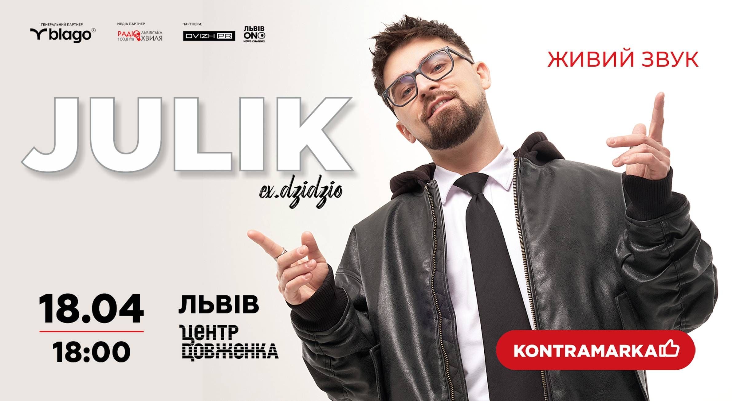 У суботу, 18 квітня, Центр Довженка на Сихові прийме перший великий сольний концерт Юліка – колишнього учасника гурту DZIDZIO. Початок події запланований на 18:00.