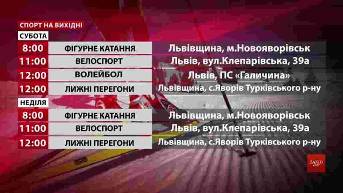 М’яч, велосипед, ковзани та лижі. Такий реманент знадобиться спортсменам цього вікенду. У місті гратимуть у волейбол та гасатимуть на «сталевих конях». А в області кататимуться на ковзанах і лижах. Розпланувати вихідні допоможе наша постійна рубрика.