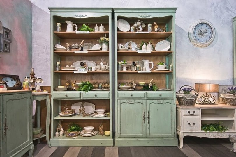 Акцент провансу – дерево. Саме його в основному обирають як матеріал для меблів у цьому стилі. Їх оздоблення при цьому роблять із вигинами, різьбленням. Меблі виконують не тільки функціональну роль, але й декоративну. При цьому в ідеалі вони мають виглядати так, ніби служили багатьом поколінням родини. Тому тут не підійде глянцевий ефект, краще зробити ефект давнини. Дуже цінуються старовинні або антикварні речі.