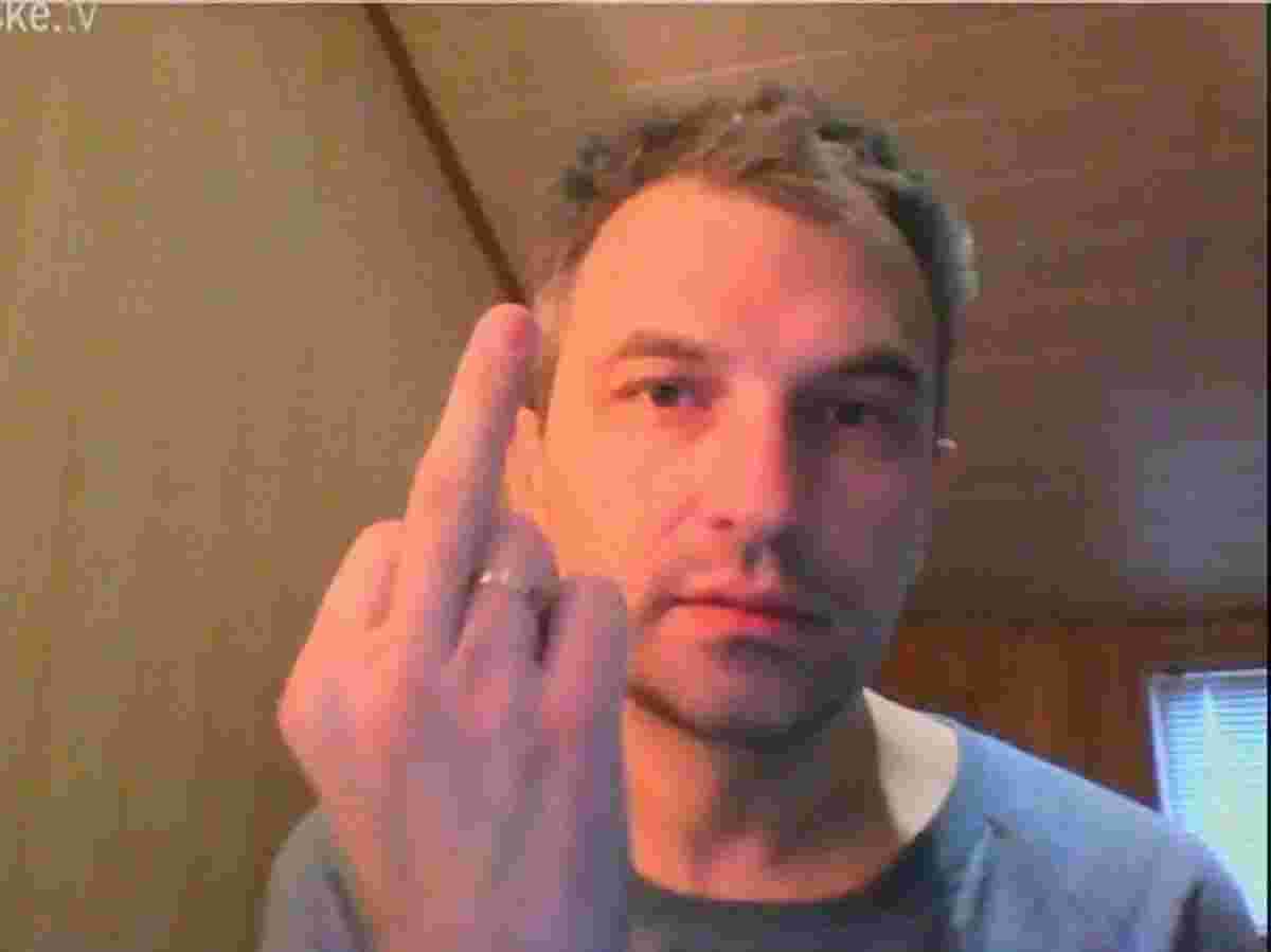 Телеведучий Роман Скрипін у прямому ефірі Hromadske.TV показав середній палець народному депутату від Партії регіонів Володимиру Олійнику.