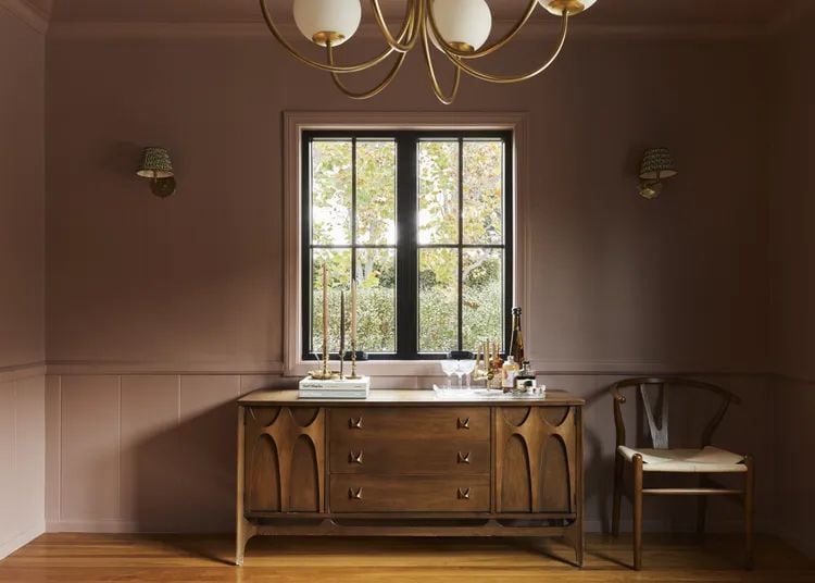«Цей відтінок, хоча й тяжіє до більш ніжної естетики, має відтінки землистої глини, що робить його придатним для будь-якого будинку. Цей базовий колір створює сміливий дизайнерський акцент, не здаючись при цьому надто нав’язливим чи кричущим. І саме ця витонченість кольору створює заспокійливу та теплу атмосферу в цій їдальні», – каже Селестін МакГлінн, дизайнер інтер’єрів у Spec + Sage.
