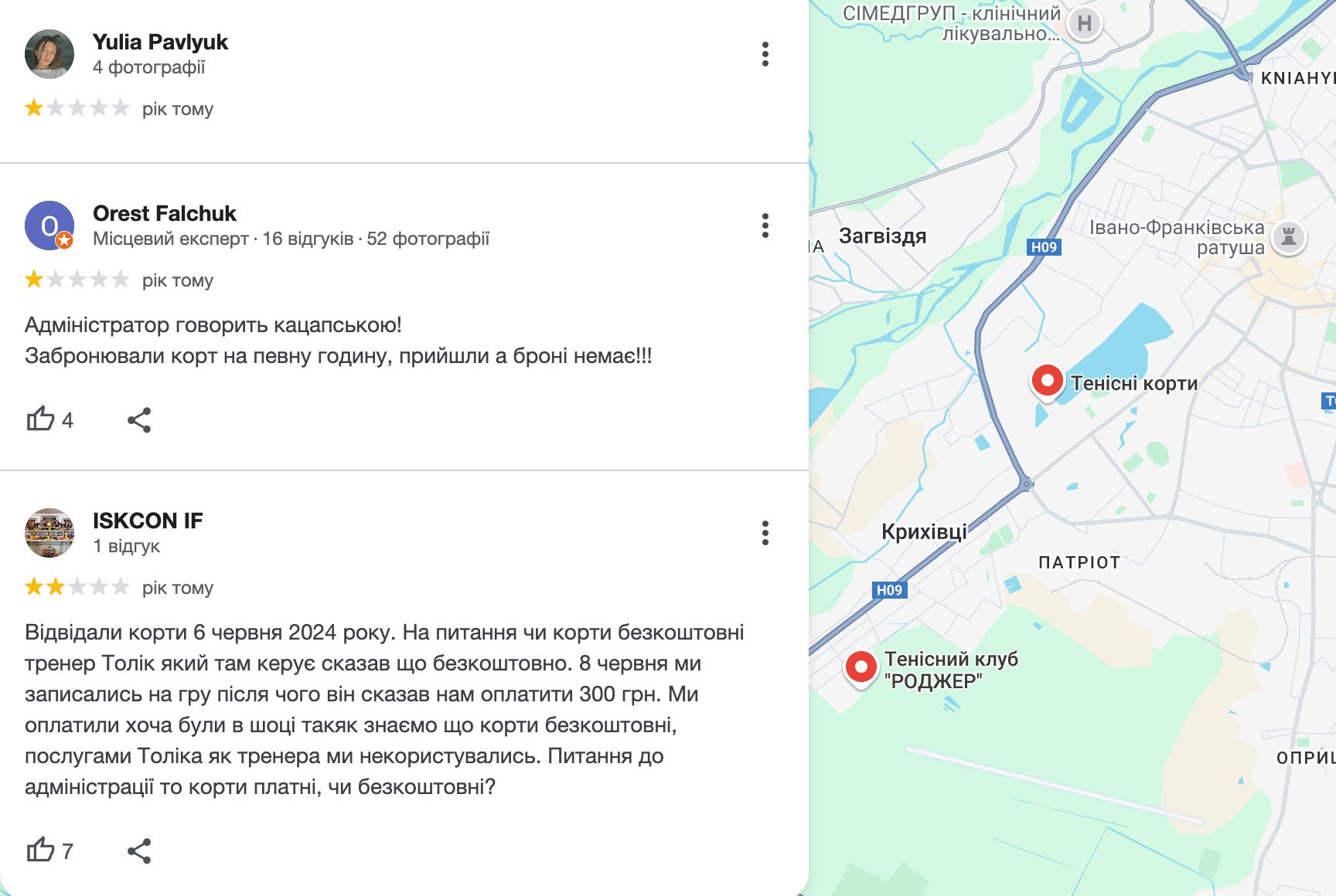 Щоправда, місцеві мешканці, вочевидь, кортами вже користувались. Принаймні про це свідчать відгуки в Google maps.