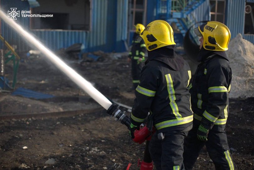 В ДСНС Тернопільщини повідомили, що рятувальники вже ліквідували пожежу, яка виникла на місці ракетної атаки. Працювало 66 рятувальників та 16 одиниць техніки.