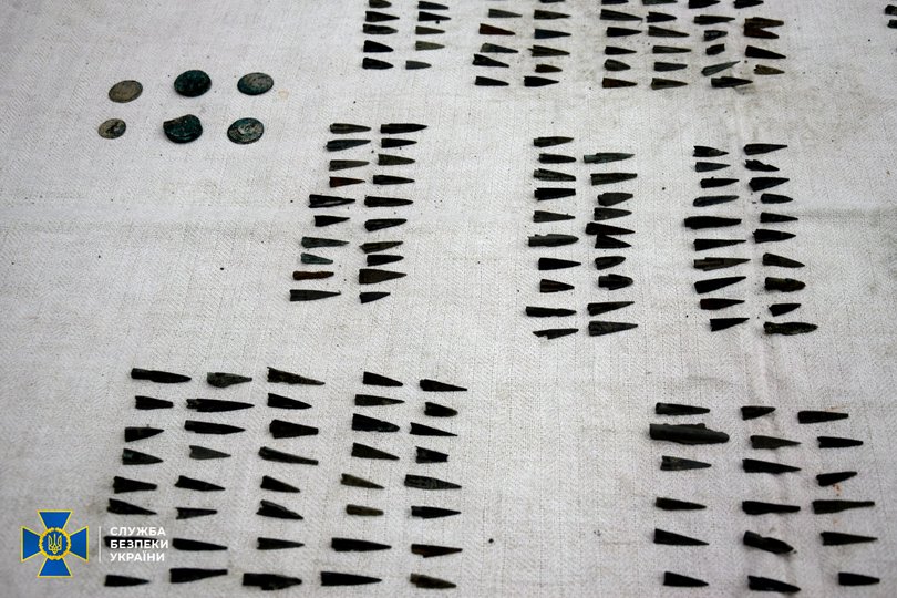В колекцію, яку вилучили працівники СБУ, входило 382 скіфських наконечники стріл, датовані VII-III століттям до нашої ери, та 6 зліпків пруських монет часів правління Сигизмунда I.