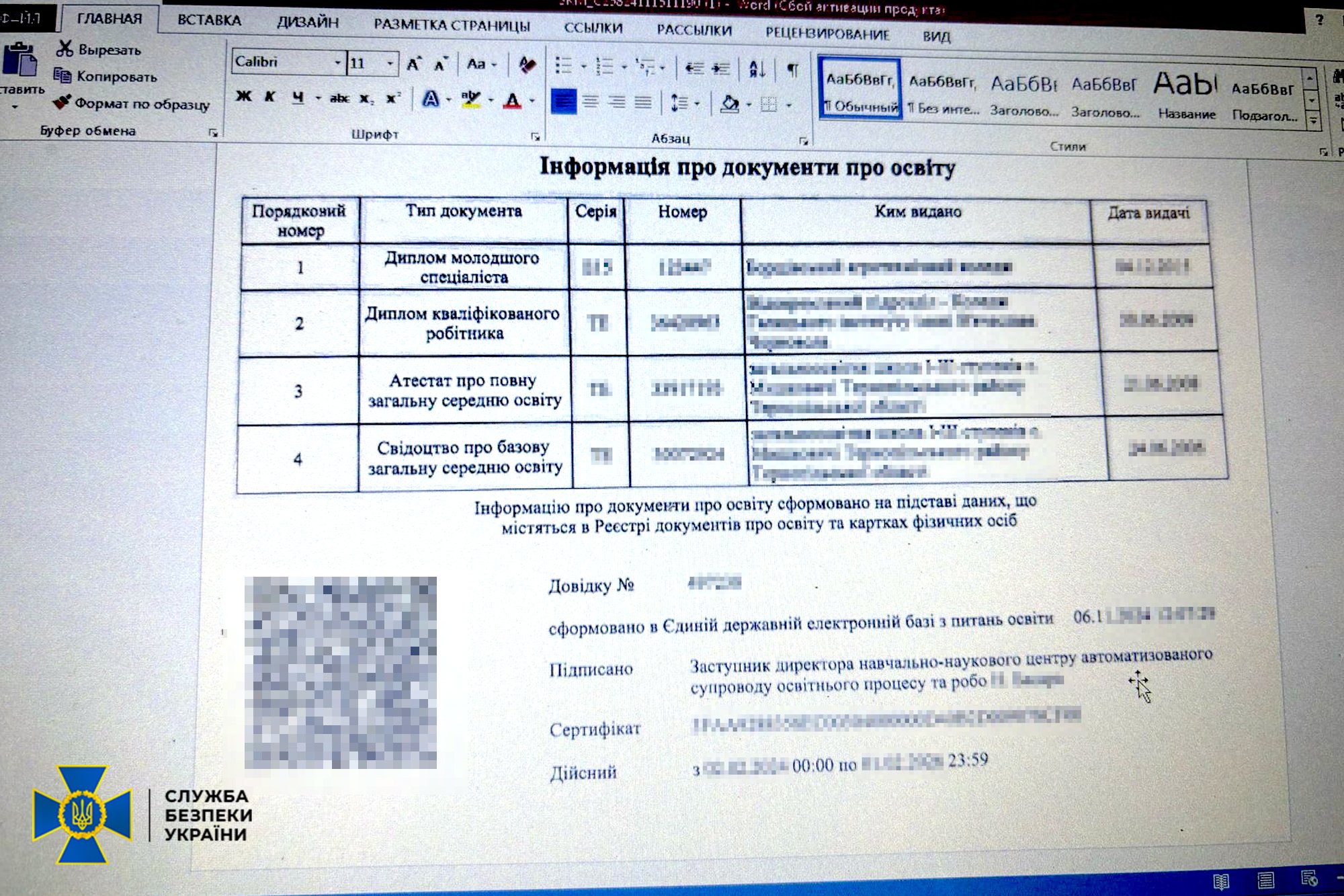 «Використовуючи комп’ютер, організатор схеми виготовляв підроблені довідки про навчання ухилянтів у вищому навчальному закладі, про групу інвалідності або догляд за не дієздатними особами. Згодом на підставі таких “довідок” зацікавлені співробітники ТЦК вносили недостовірні дані до єдиного електронного реєстру призовників, військовозобов'язаних та резервістів», – зазначили в СБУ Тернопільщини.