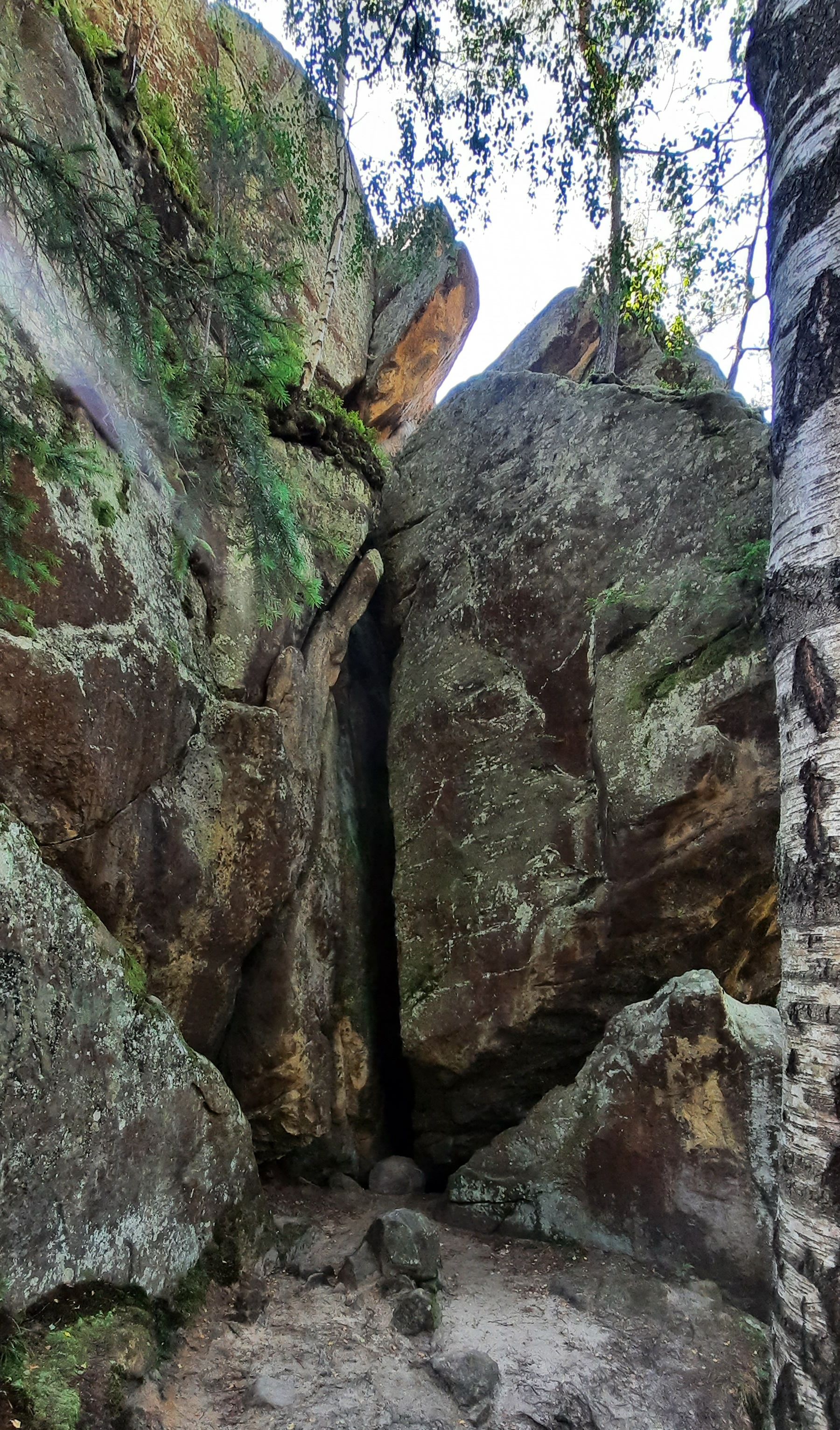 Вузька печера-чистилище і камінь-ящур праворуч від входу (фото ZAXID.NET)