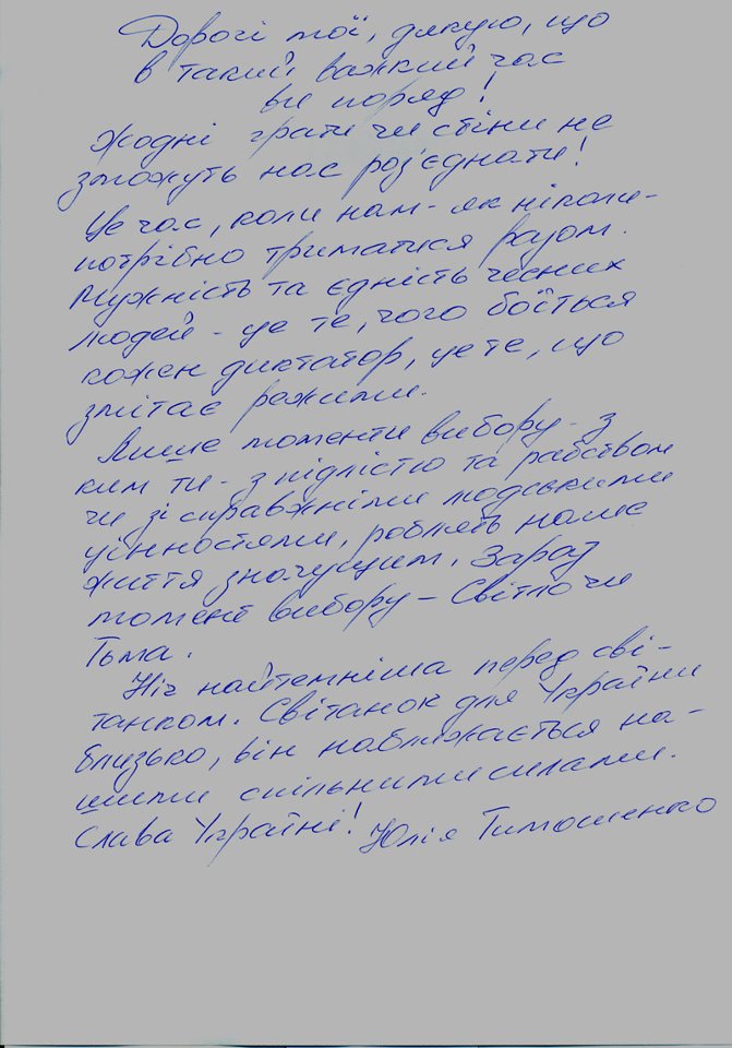 «Слава Україні!», – завершила листа Ю.Тимошенко.