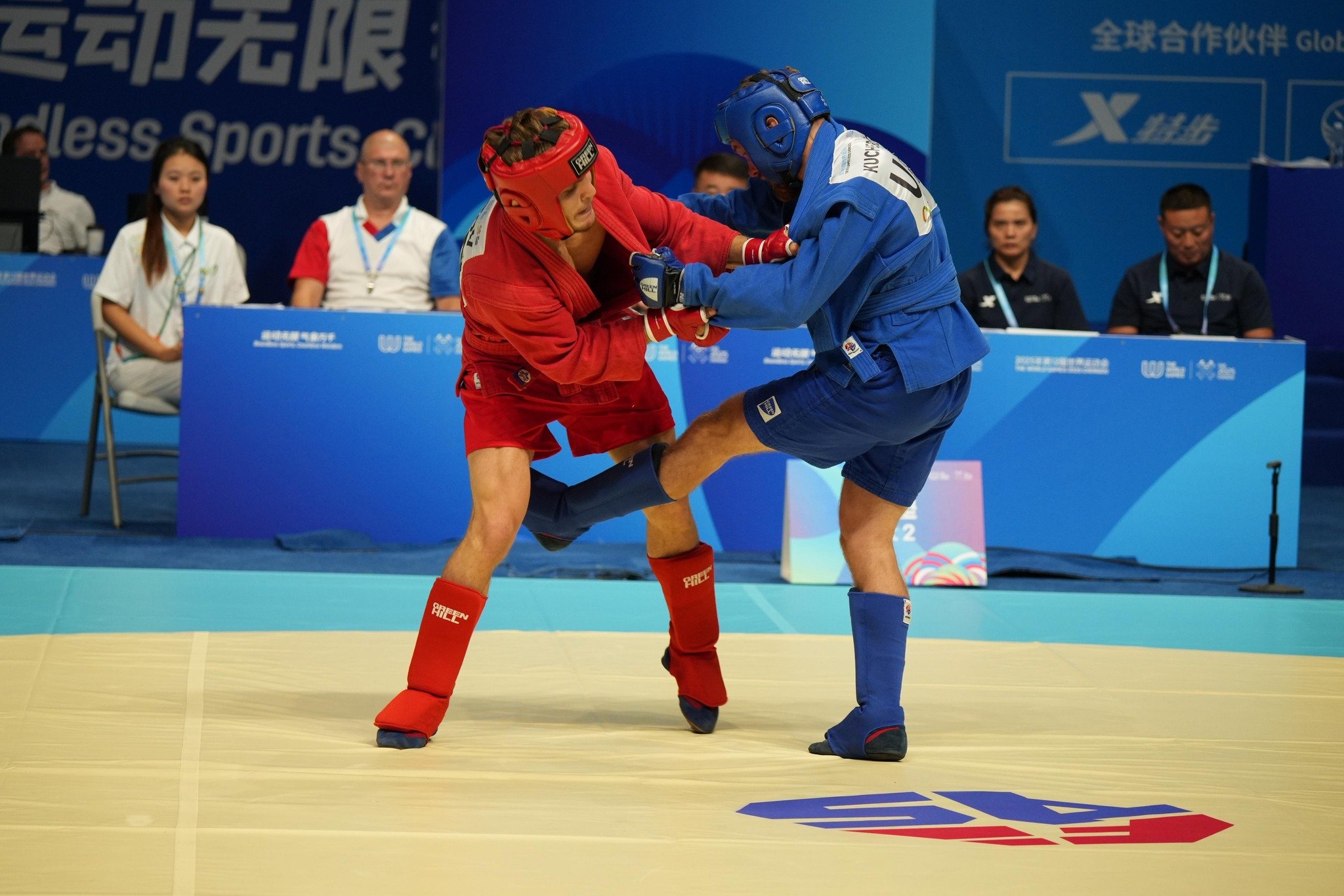 Українські спортсмени Андрій Кучеренко, Владислав Руднєв та Петро Давиденко перемогли росіян у фіналі змагань з самбо на Всесвітніх іграх. Росіяни у змаганнях виступали як нейтральні спортсмени. «Суспільне спорт», яке офіційно транслює Всесвітні ігри, у середу, 13 серпня, повідомило, що завдяки успіхам спортсменів Україна має 26 медалей. Це третє місце у таблиці Всесвітніх ігор на шостий змагальний день.