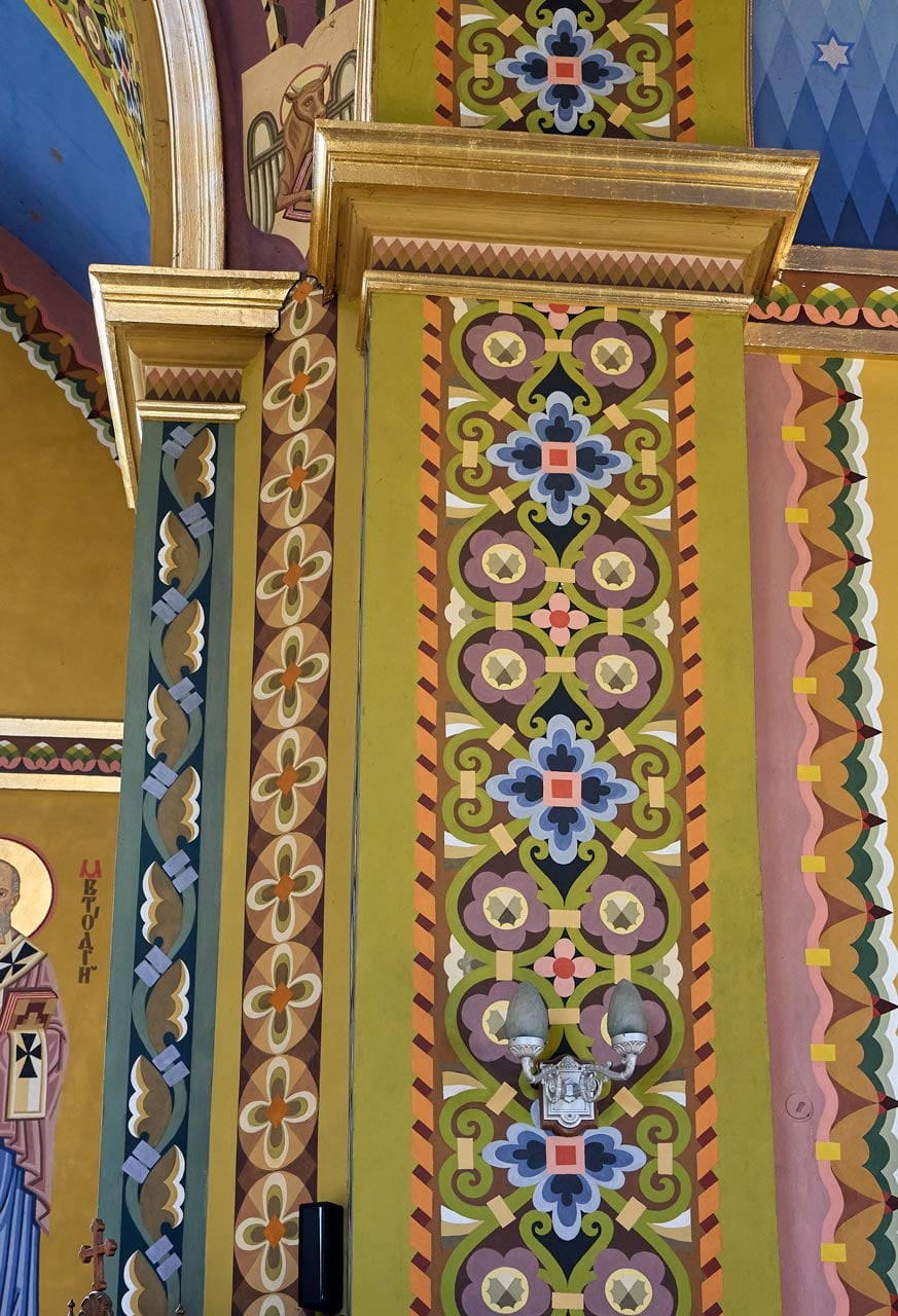 Це були перші і основні роботи в храмі. Розпис стін продовжили аж 1936 року. Зате цим займалися неабиякі професіонали – відомі художники Павло Ковжун та Михайло Осінчук. Фігури постатей зображав Осінчук, а Ковжун займався проєктуванням та розробкою орнаментів. Однак Ковжун помер у 1939 році, і роботу продовжував сам Осінчук, вже під час війни. Проте вівтарну частину і бабинець таки не встиг розписати.