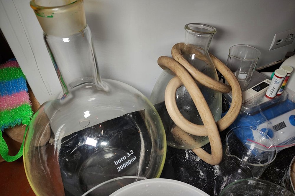 За синтез психотропів відповідав 35-річний член угруповання, який мав знання та уміння роботи з хімічними сполуками. Лідер угруповання повністю забезпечував лабораторію необхідним обладнанням та прекурсорами, а її потужності дозволяли виготовляти щонайменше 3 кг психотропа щомісяця.