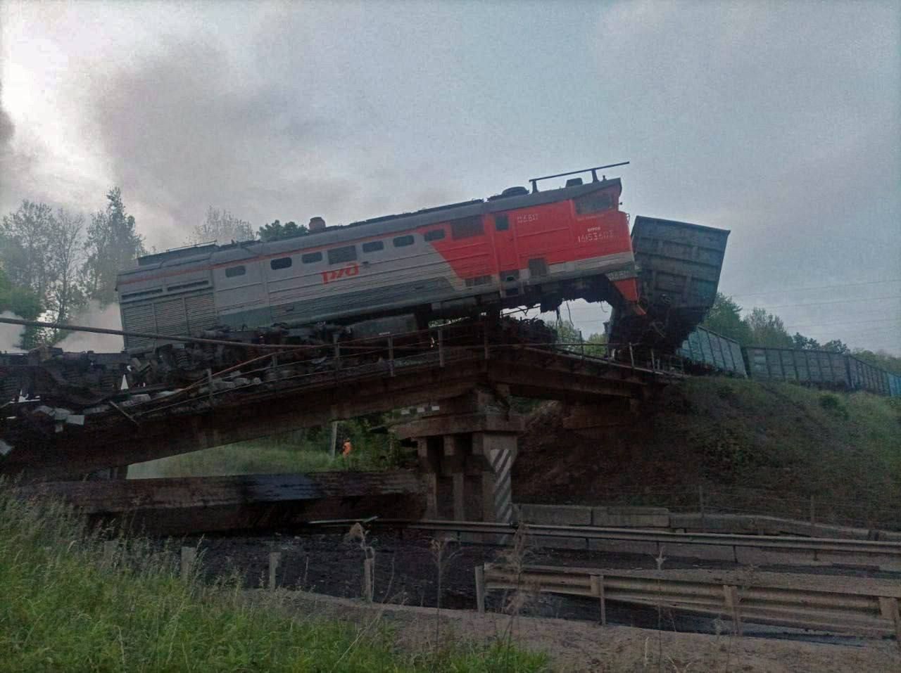 Окрім того, губернатор Курської області Олександр Хінштейн повідомив, що в ніч на 1 червня на трасі Тросна – Калинівка під час руху вантажного локомотива стався обвал мосту. Частина поїзда впала на автомобільну дорогу, що розташована під мостом. Постраждав один з машиністів – у нього травмовані ноги. Усіх членів локомотивної бригади госпіталізували до лікарні.