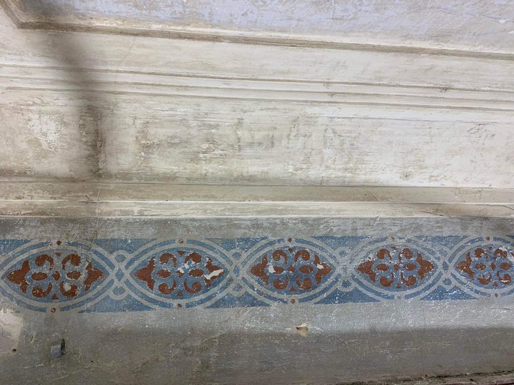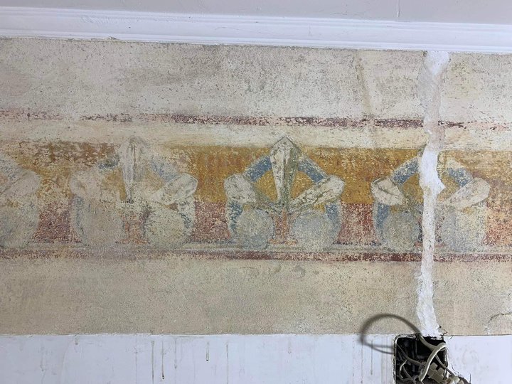 «Ми з’ясували, що приміщення колись було перебудовано. Спершу все виглядало, як один коридор. Коли почали розчистки, по периметру знімали всі пізніші акрилові побілки, зрозуміли, що відкриваємо не той орнамент, який раніше знайшли. З’ясувалося, що там була ще одна перегородка. У тому приміщенні ми виявили два розписи», – розповіла реставраторка Ірина Гірна.