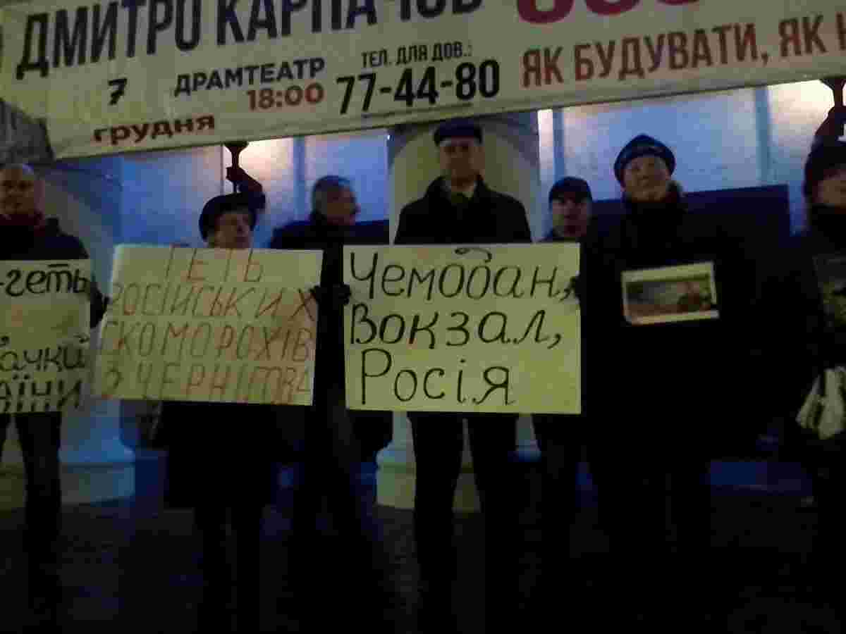 До театру прийшли родичі загиблих військових в АТО, які тримали їхні портрети, повідомляє ВВС. Під час протесту невідомі кинули у натовп димові шашку.