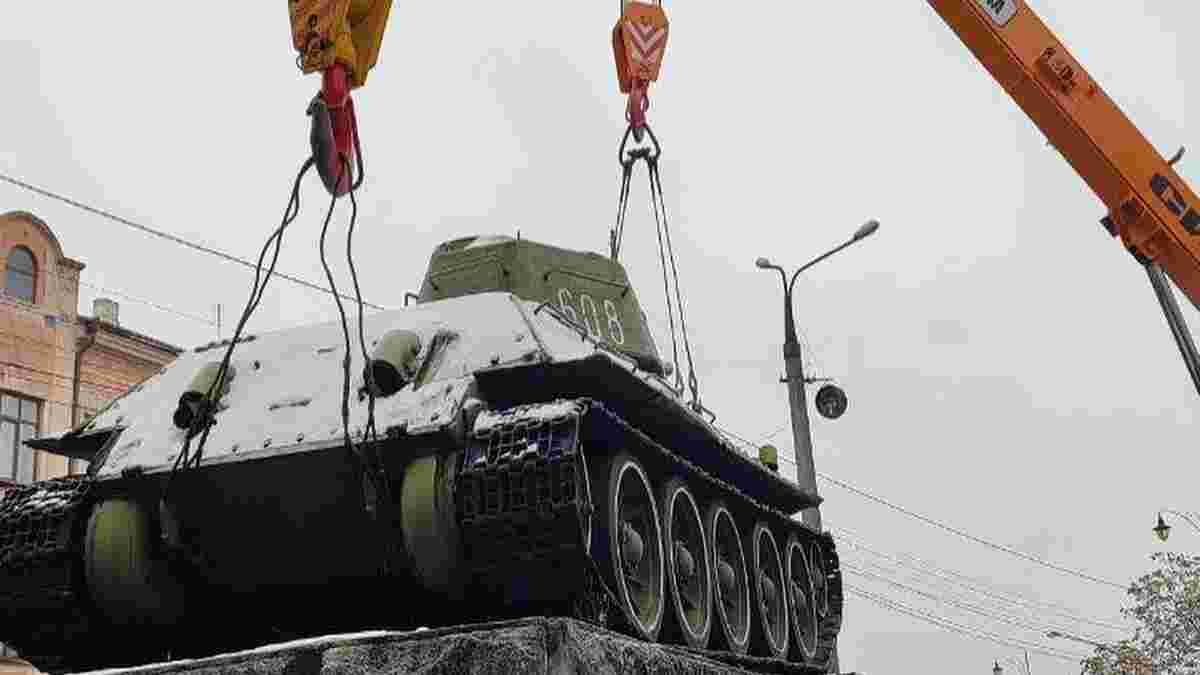 Закликали демонтувати танк самі чернівчани в соцмережах, оскільки він є символом війни й тоталітарного режиму. За словами міського голови, танк перевезли в інше місце. Подальшу долю радянського пам’ятника громада вирішуватиме після війни.