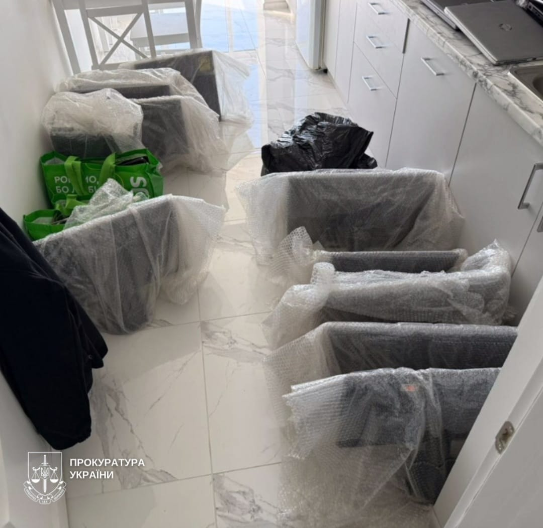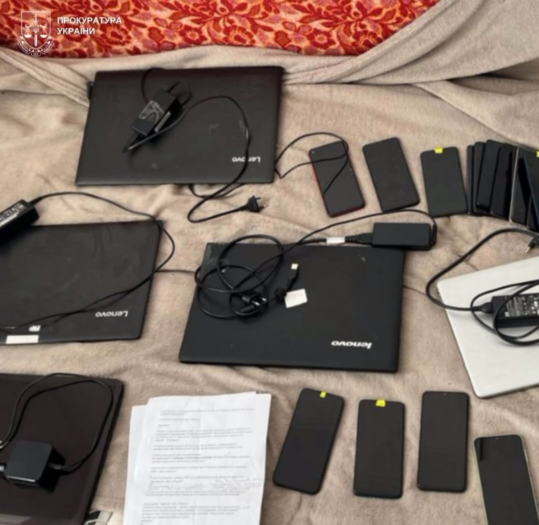 Під час обшуків на території Чернівецької та Одеської областей вилучили 79 мобільних телефонів, форменний одяг, шеврони та інші розпізнавальні знаки працівників правоохоронних органів Республіки Казахстан, а також банківські та рекламні картки, бейджі співробітників банків Казахстану.