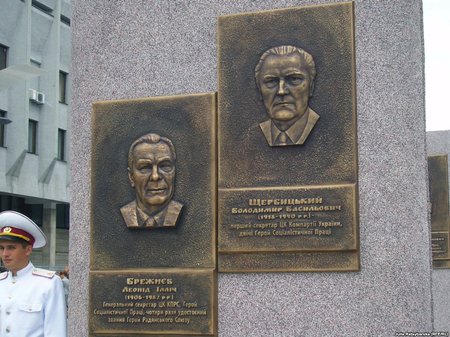 Серед них – барельєфи генерального секретаря ЦК КПРС Леоніда Брежнєва, першого секретаря ЦК Компартії України Володимира Щербицького, колишнього президента України Леоніда Кучми, повідомляє Радіо Свобода.