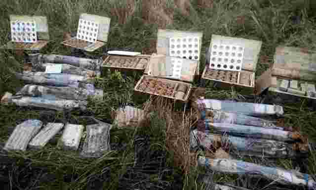 Як зазначається, у напівзруйнованому бліндажі поблизу селища Дача Межівського району співробітники СБУ вилучили шість ящиків гранат РГД-5 (по 20 штук у кожному), 18 реактивних гранатометів у заводській упаковці, 35 сигнальних ракет та 50 коробок зі зарядами для артилерійських снарядів.