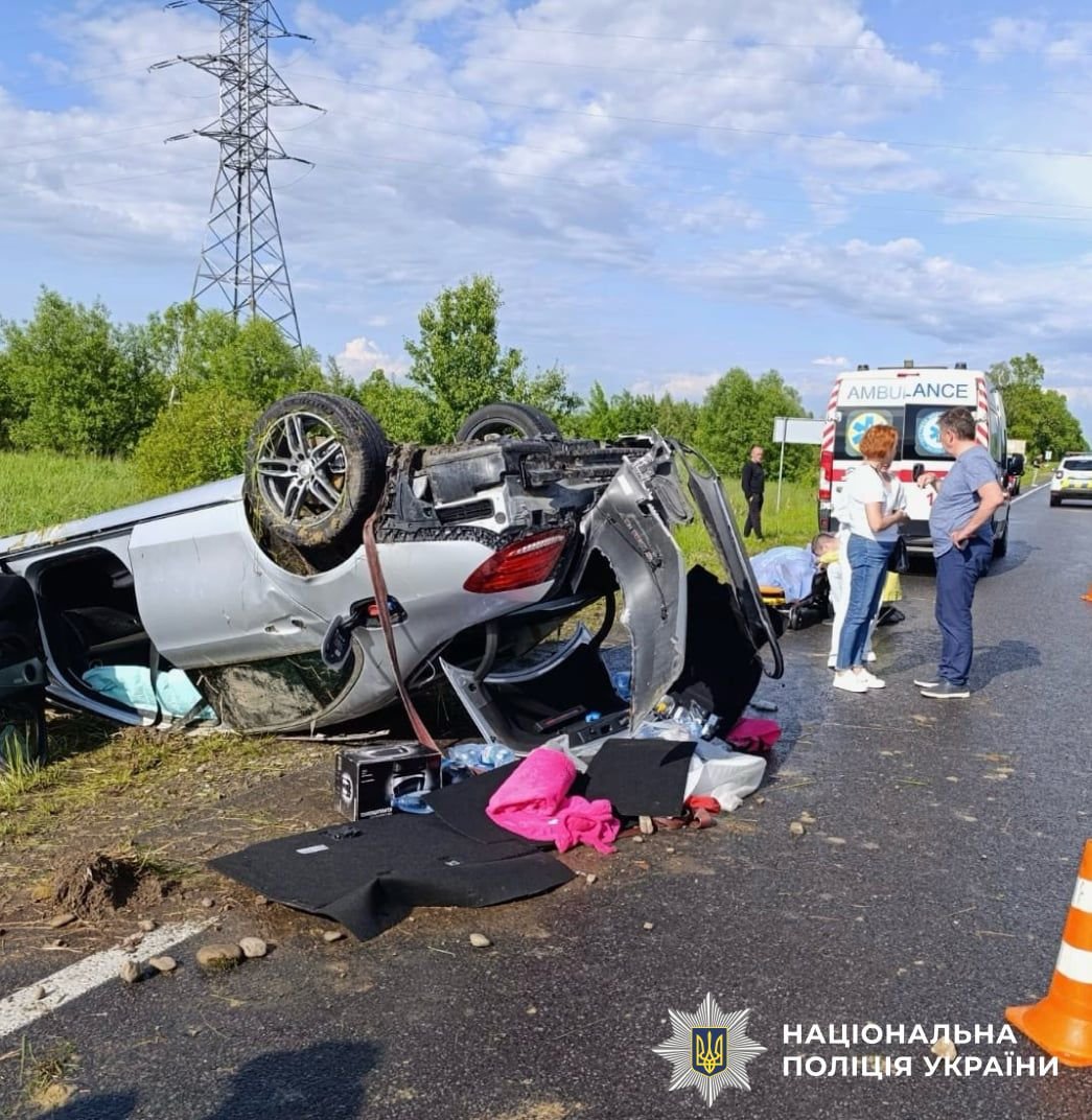 Як розповіли у поліції Івано-Франківської області 2 червня, водій Mercedes не впорався з керуванням та, з’їхавши у кювет, зіткнувся з бетонною основою металевої конструкції. Після цього автомобіль перекинувся.