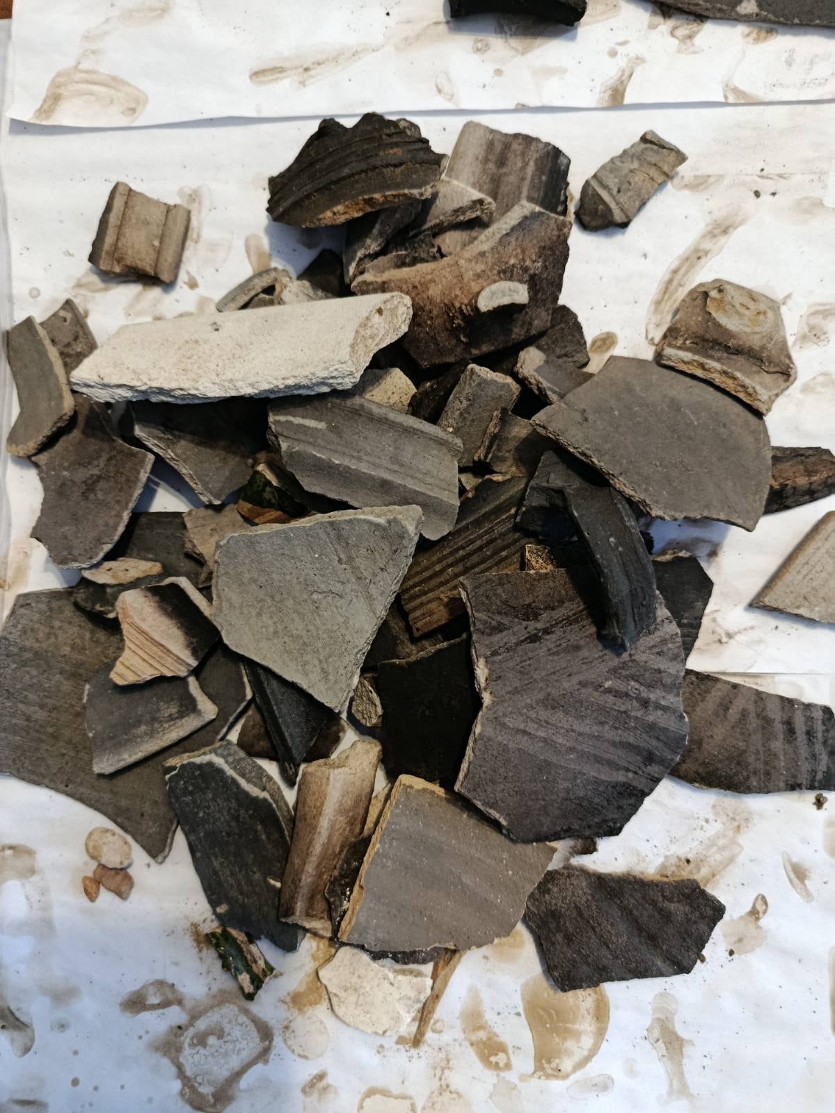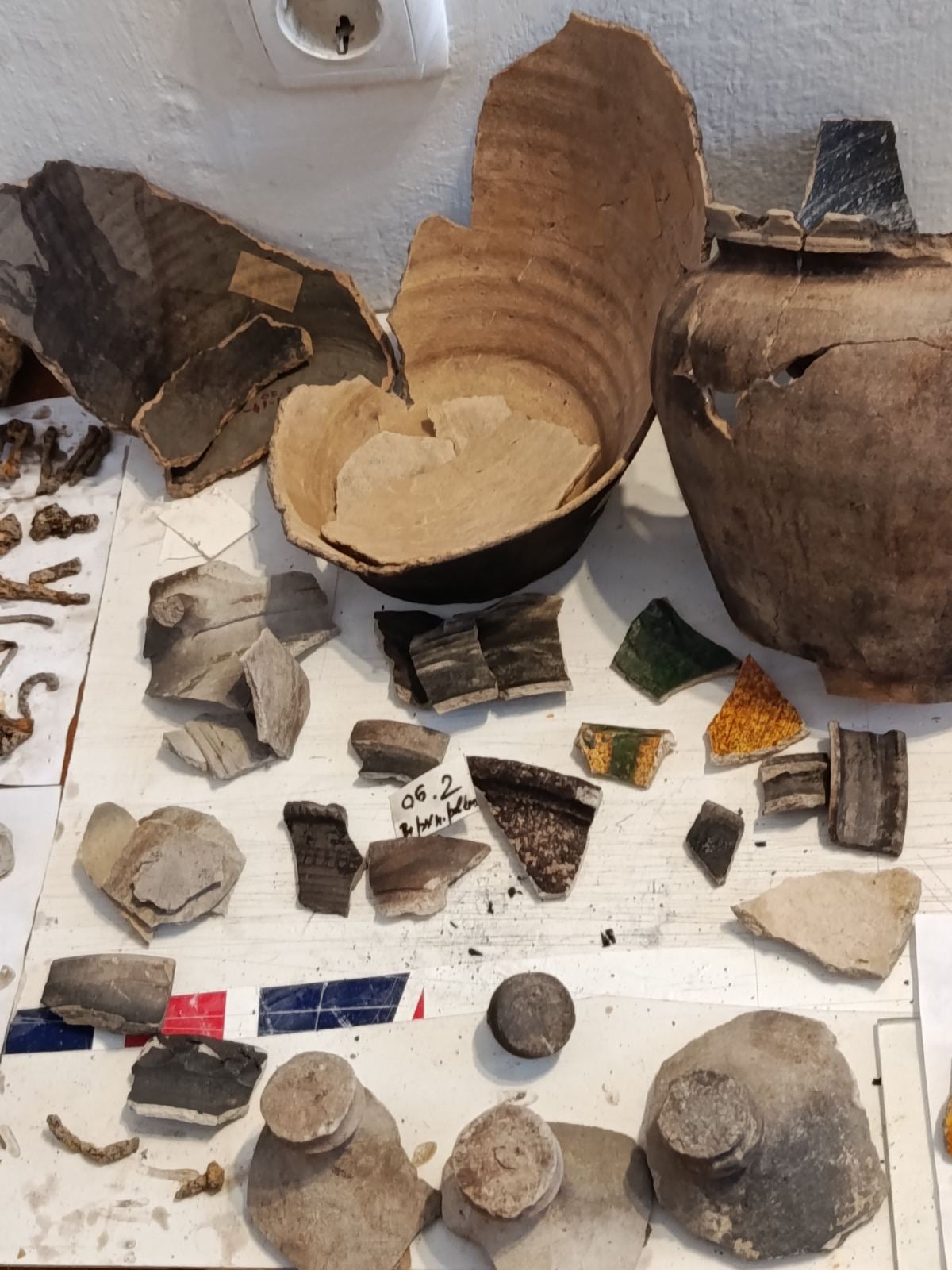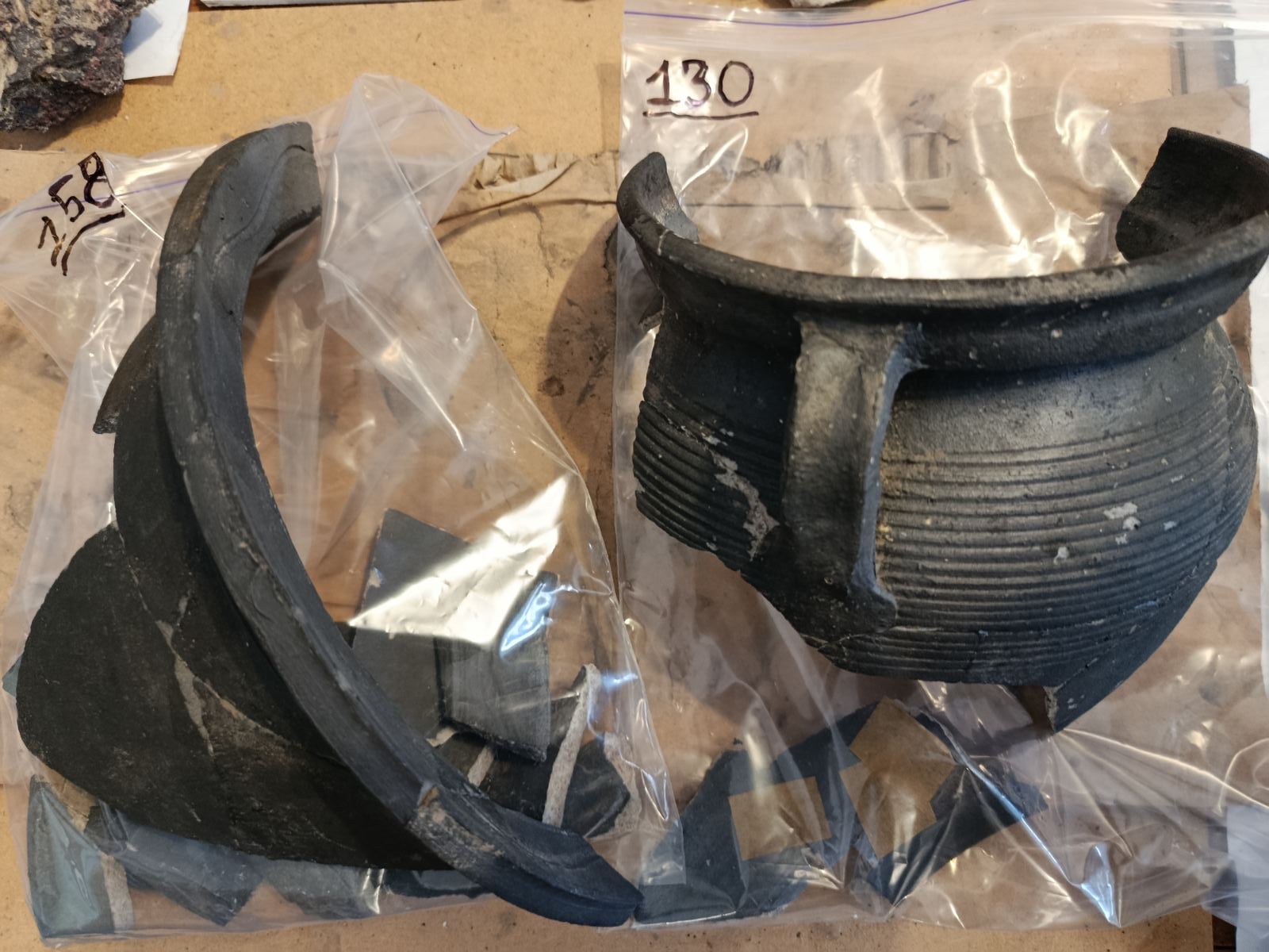 У розкопі виявили також 192 уламки посуду, здебільшого горщиків, а також глеків, макітер, мисок і покришок.
