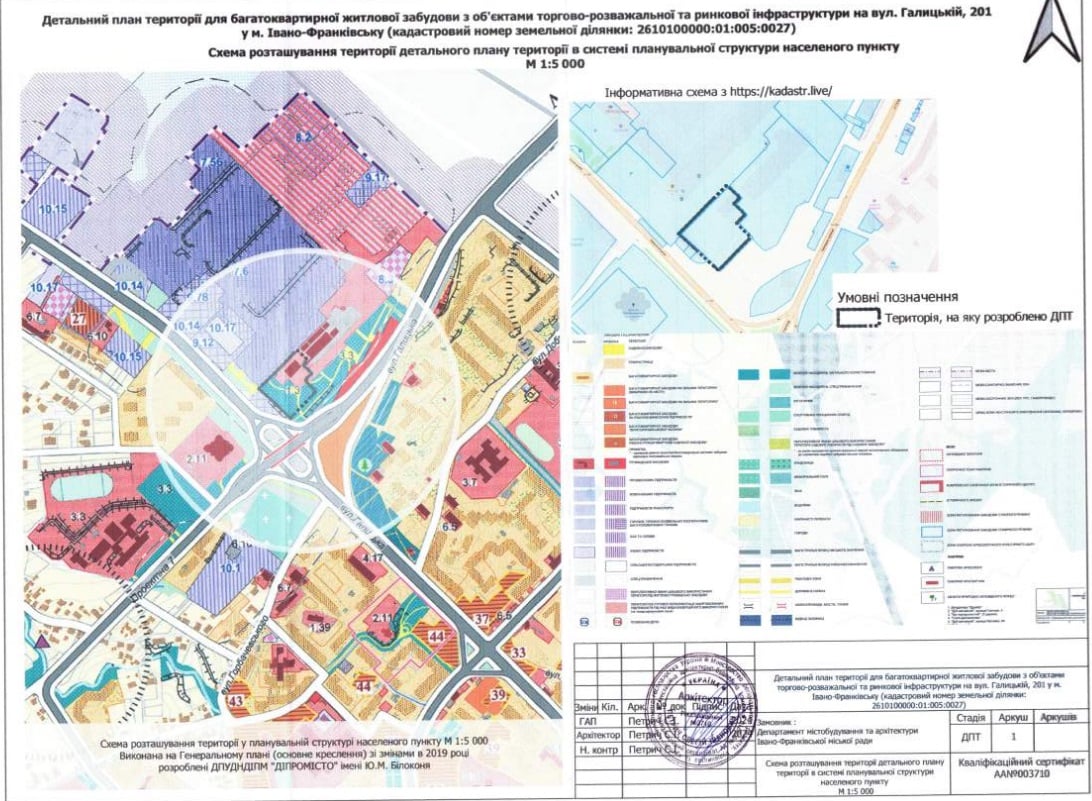 В Івано-Франківську розпочалося обговорення детального плану території для багатоквартирної забудови з об’єктами торгово-розважальної та ринкової інфраструктури на вул. Галицькій, 201. Містобудівну документацію оприлюднили в Департаменті містобудування та архітектури Івано-Франківської міськради 6 листопада.