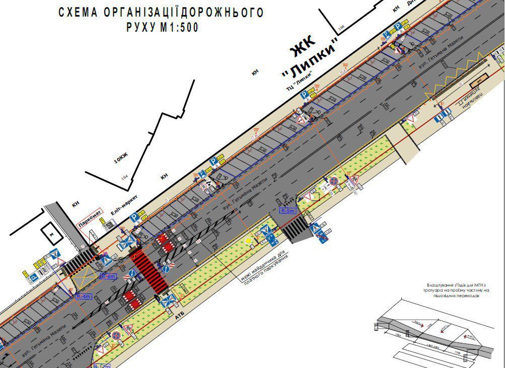 - вул. Гетьмана Мазепи (біля ЖК «Липки», заїзд/виїзд до Reikartz Park Hotel) – 127 місць, з них 14 місць для осіб з інвалідністю.