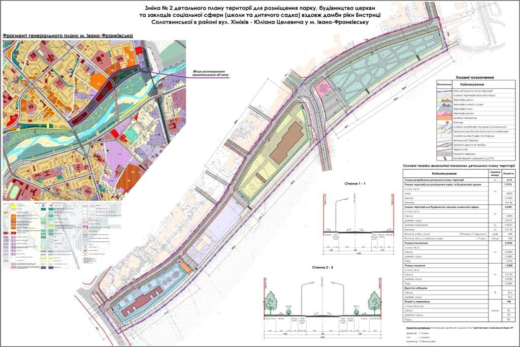 Основний детальний план цієї території затвердили ще у 2018 році. Пропоновані зміни стосуються території 8 га зеленої зони річки Бистриця, поблизу моста-довгобуду на Пасічну, в районі вулиць Хіміків та Юліана Целевича. Зміни до ДПТ передбачають облаштування парку на 2 га, будівництво школи на 600 учнів і дитсадка на 240 дітей. Поруч запланували паркінг на 148 автомобілів.