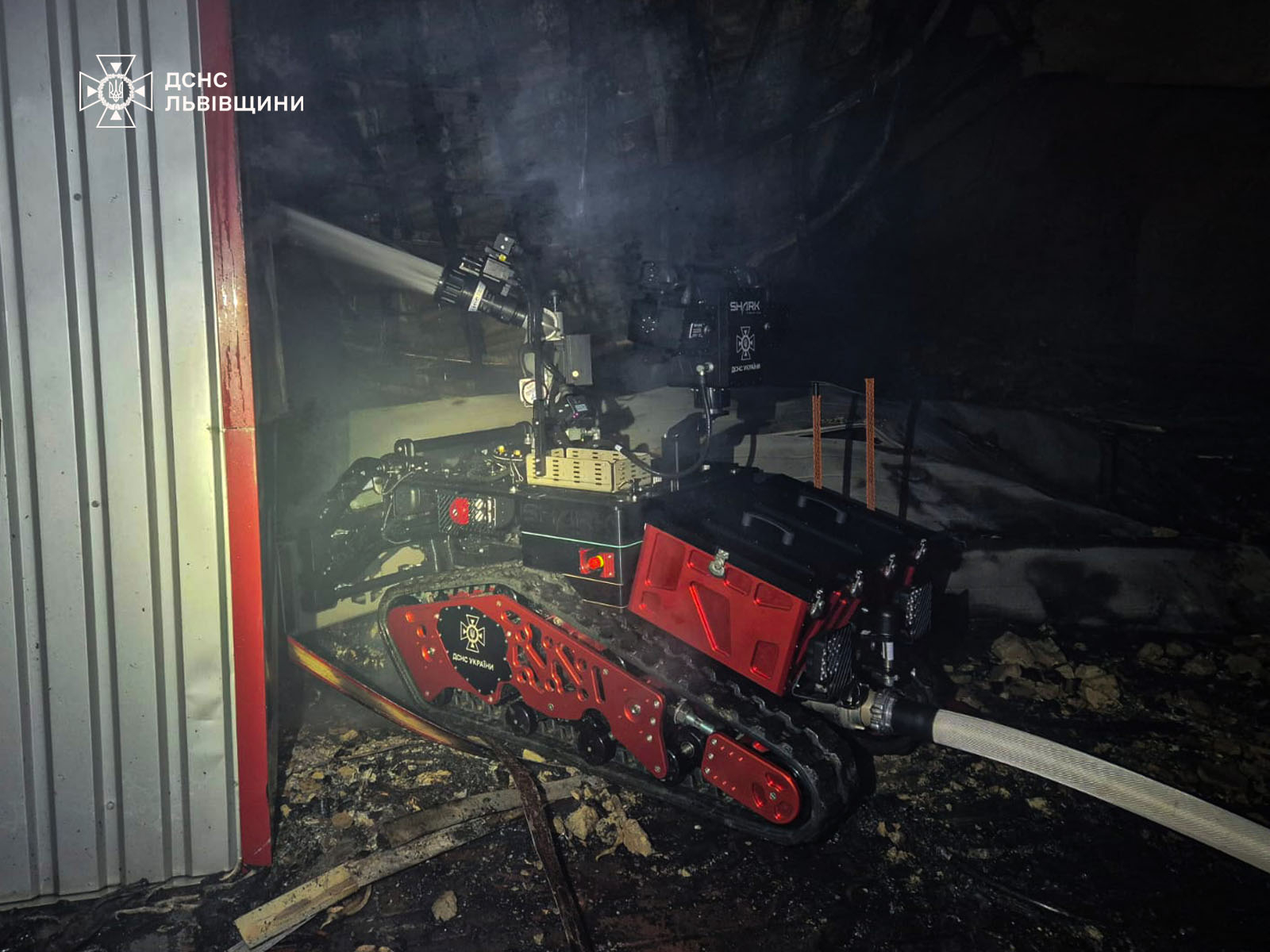 «На момент прибуття вогнеборців будівля була охоплена вогнем. Рятувальники включились у спеціальні апарати захисту органів дихання та зору і приступили до проведення робіт з ліквідації загорання. Через велике пожежне навантаження до робіт з пожежогасіння надзвичайники залучили роботизовану техніку», – повідомили в ДСНС.