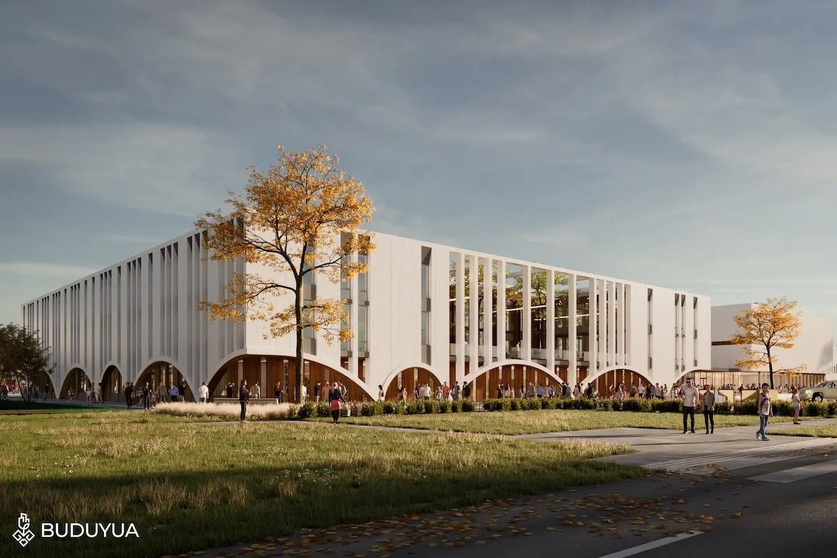 Новий проект розраховано на 1000 дітей: 850 учнів ліцею та 150 дошкільнят. Особливу увагу приділили рекреаційним просторам – комфортним і наповненим денним світлом. Ззовні облаштують парк, спортивні майданчики та простори для дозвілля дітей різного віку. З двору відкриватиметься вид на ангар літака «Мрія».