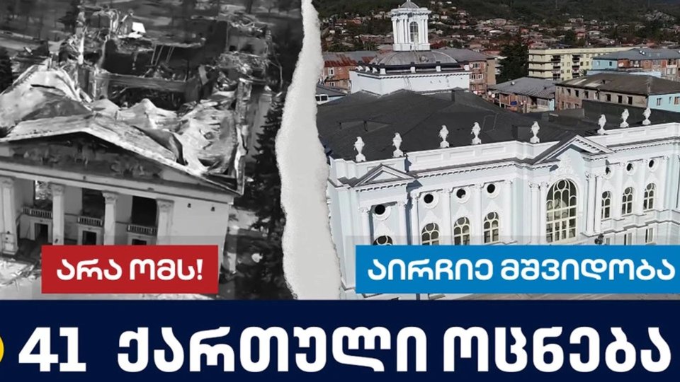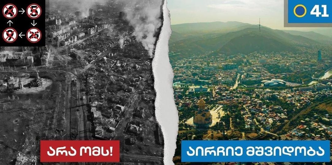 Нагадаємо, на агітаційних банерах та відео партії зображені міста, будівлі та церкви, знищені внаслідок російського вторгнення в Україну, зокрема зображення розбомбленого Маріупольського театру з передвиборчими номерами опозиції та написом «Ні війні!». У відео їм протиставлять будівлі, які побудували чи відновили за гроші грузинського проросійського олігарха Бідзіни Іванішвілі та фото нічного Батумі з написом «Обери мир». На банерах також перекреслені передвиборчі номери чотирьох великих опозиційних грузинських партій і об'єднань – «Коаліції за зміни», «Єдності – Національного руху», «Сильної Грузії» і «Гахарія за Грузію».