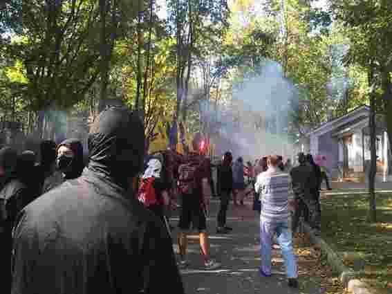 Тим часом активісти кинули піротехніку, і закінчили акцію.