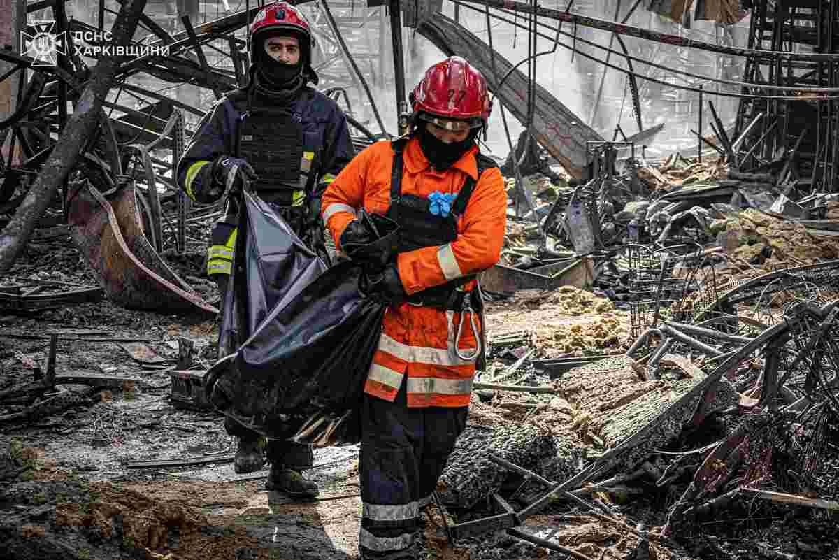 Роботи з розбору завалів на місці знищеного гіпермаркету тривають третій день. Процес пошуку фрагментів тіл ускладнений площею гіпермаркету, яка сягає близько 13 тисяч квадратних метрів, та пожежею, що виникла внаслідок влучань.