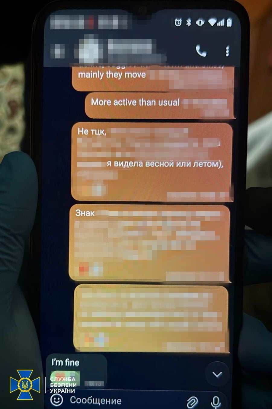 Щоб уникнути викриття, затримана змінювала телефони, спілкувалась з російською спецслужбою в анонімних чатах та завжди видаляла листування. Проте СБУ викрила і затримала російську шпигунку у її помешканні. Разом з тим українська спецслужба вжила заходів для убезпечання локацій Сил оборони. Під час обшуку у затриманої вилучили смартфони, на за допомогою яких передавала росіянам розвіддані.