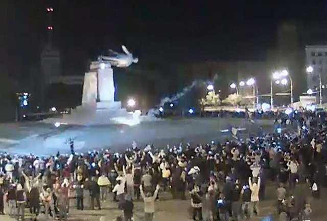 Очевидці також повідомили, що на площу Свободи почали масово прибувати мирні, патріотично налаштовані харків'яни для того, щоб побачити на власні очі, як звалюватимуть пам'ятник пролетарському вождю.