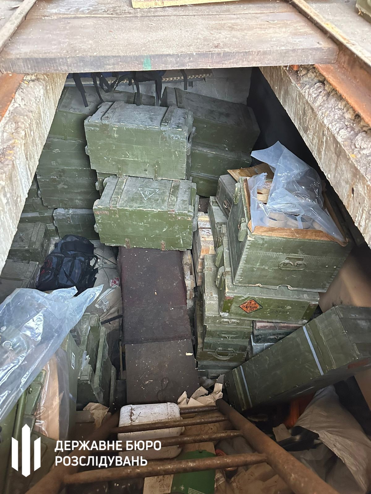 «Під час огляду схрону правоохоронці виявили десятки одиниць озброєння, серед яких: міни різного типу та гранати; реактивні протитанкові гранатомети; постріли до них; тротил; термобаричні запали; набої для автоматів та кулеметів тощо», – йдеться у повідомленні ДБР.