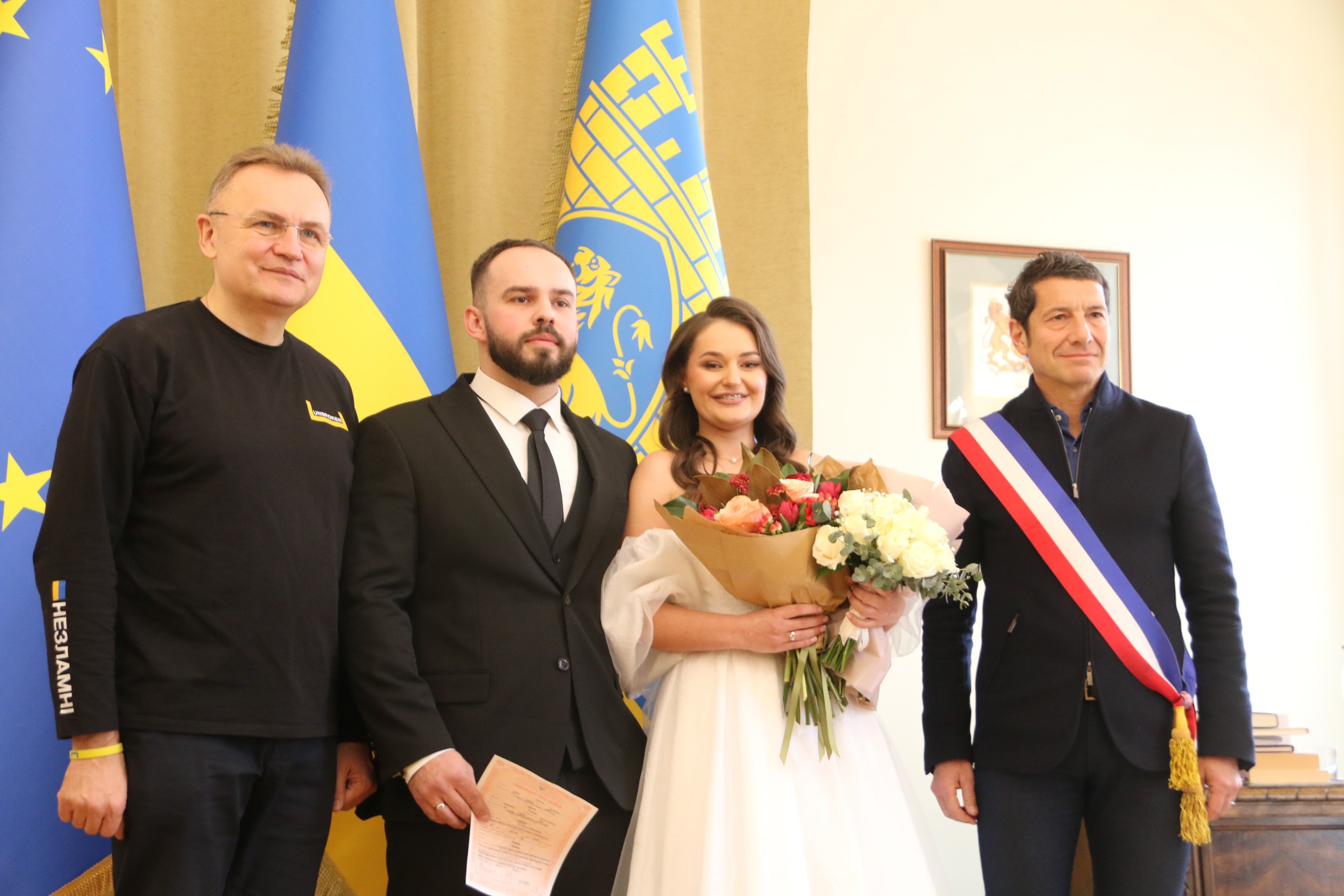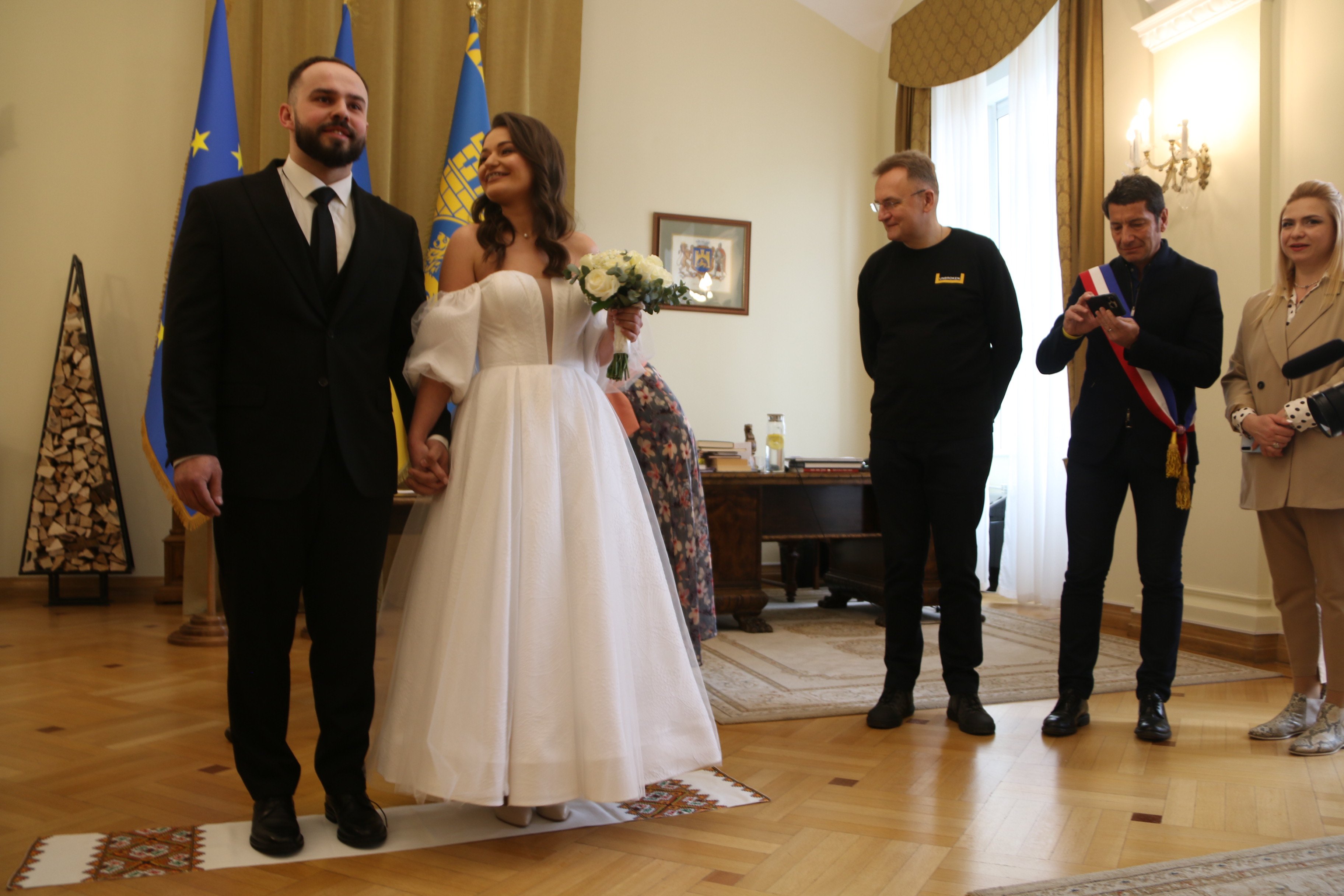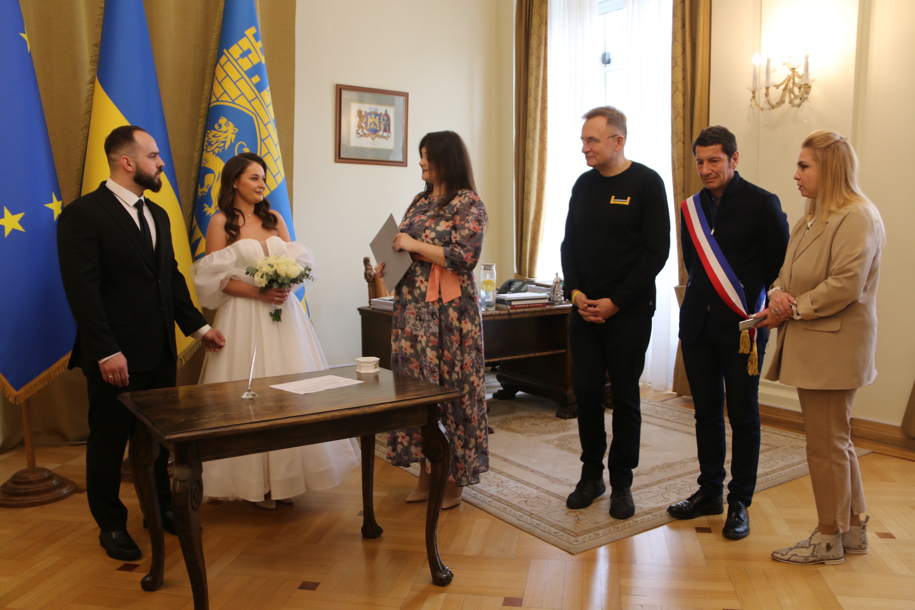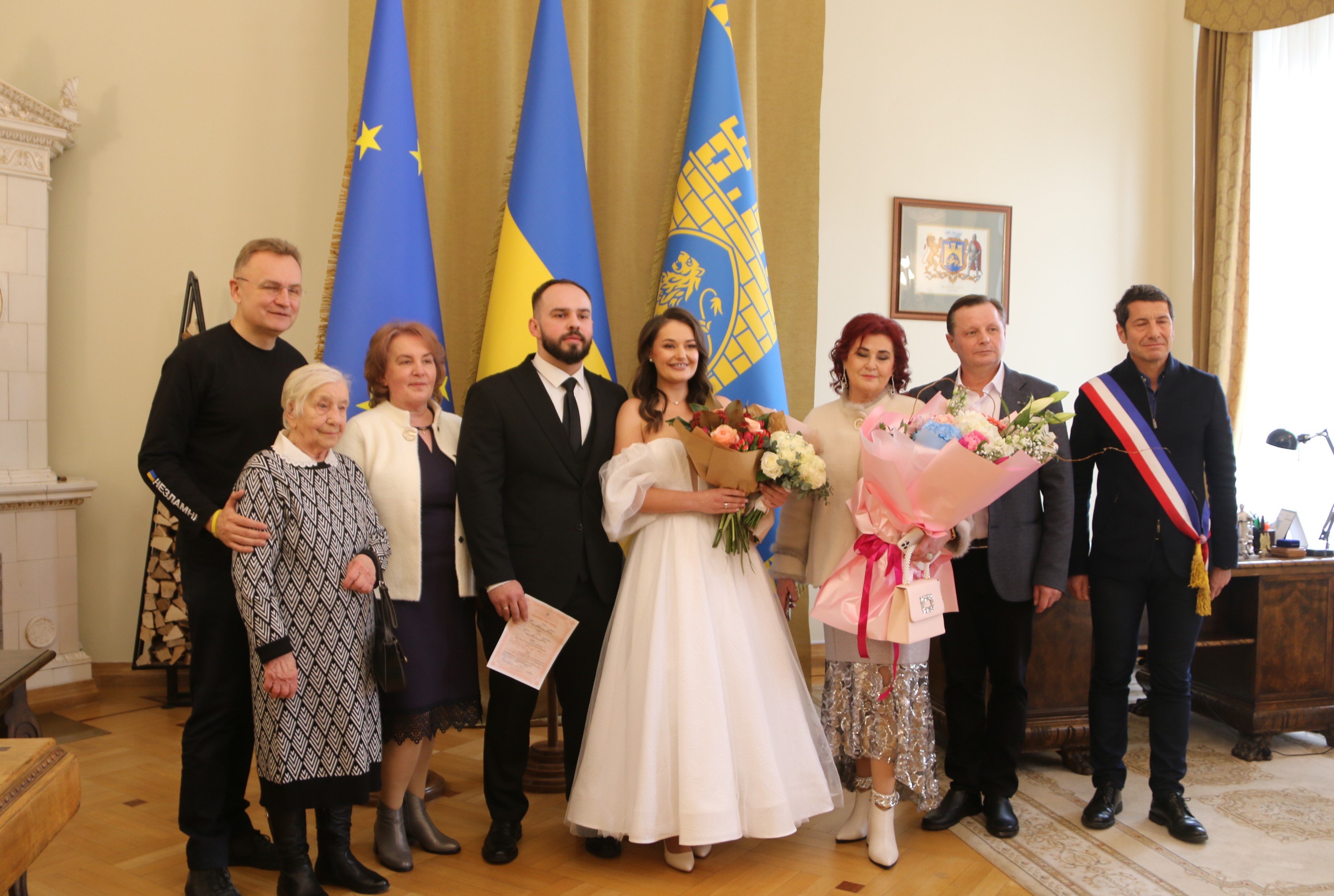 У Львівській міській раді у п'ятницю, 23 лютого, одружився військовослужбовець Назар Лемець та Анжеліка Кочмар. З 2020 року Назар Лемець працював інженером-інспектором Львівського комунального підприємства «Агенція ресурсів Львівської міської ради», а з перших днів повномасштабного вторгнення став помічником гранатометника 73-го Морського Центру Спеціальних операцій. У церемонії взяв участь міський голова Львова Андрій Садовий, який проголосив Назара Лемця та Анжеліку Кочмар чоловіком та дружиною. Також привітав наречених мер французького міста Канни Девід Ліснард, який днями перебуває з робочим візитом у Львові.
