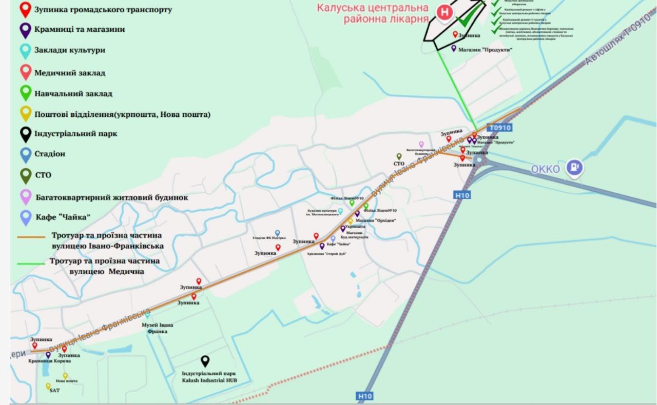 Як повідомив міський голова Калуша Андрій Найда 1 травня, довжина маршруту становить 6,4 км і він охоплює понад 60 об’єктів, серед яких центральна районна та міська лікарні, стоматологічна поліклініка та геріатричний центр.