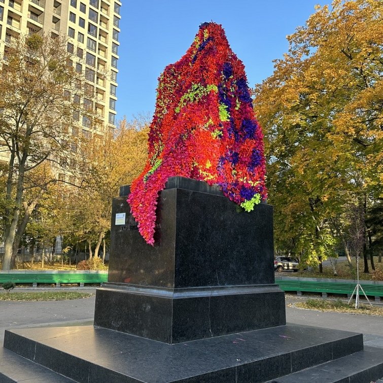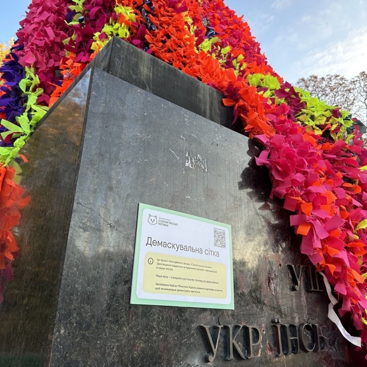 Наприкінці жовтня небайдужі активісти «демаскували» скандальний пам’ятник, закривши його яскравою сіткою.