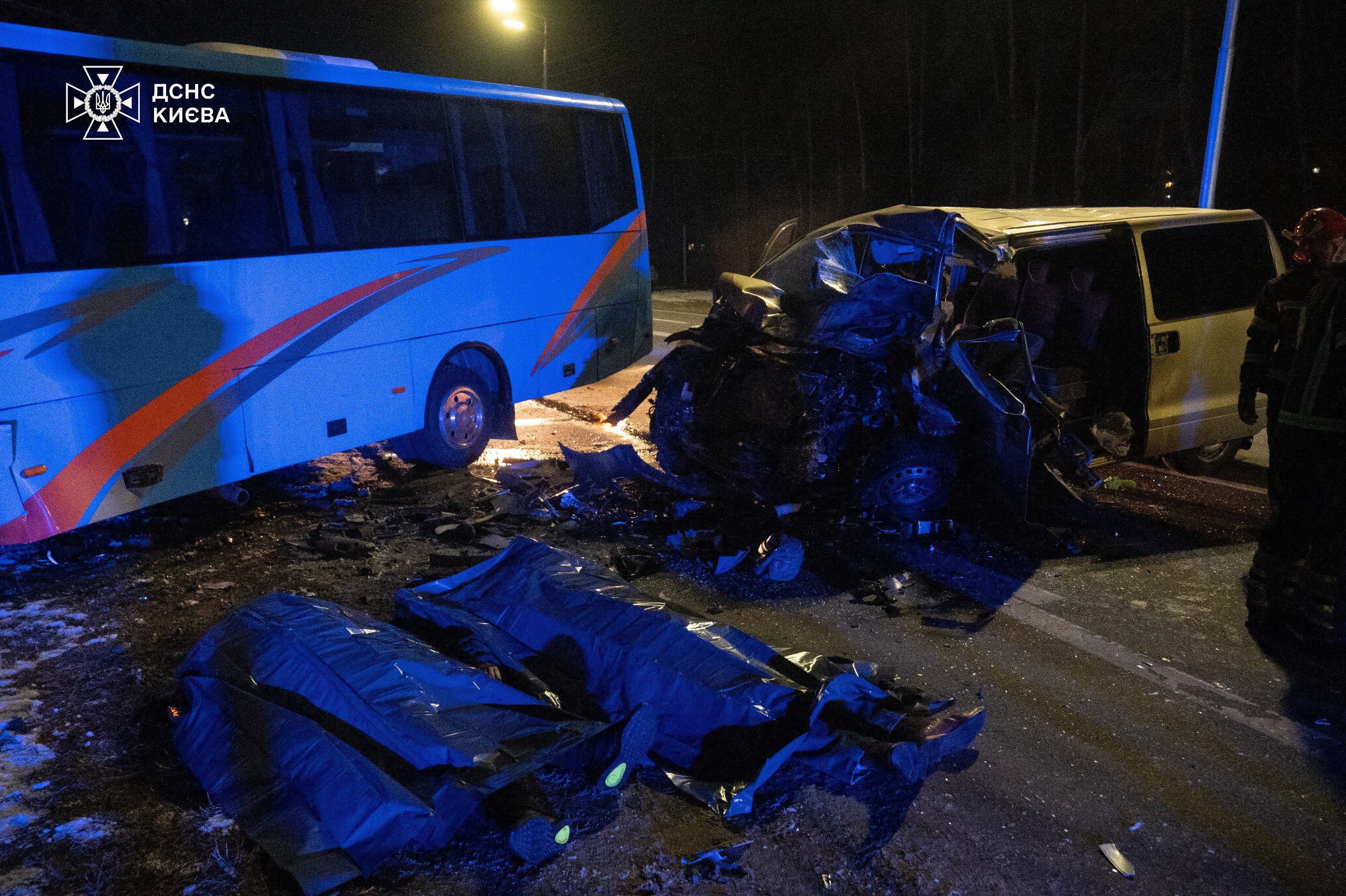 У суботу, 11 січня, під Києвом сталася ДТП за участі маршрутного автобуса та мінівена. Внаслідок аварії двоє людей загинули, ще восьмеро людей отримали поранення, повідомили у пресслужбі ДСНС.