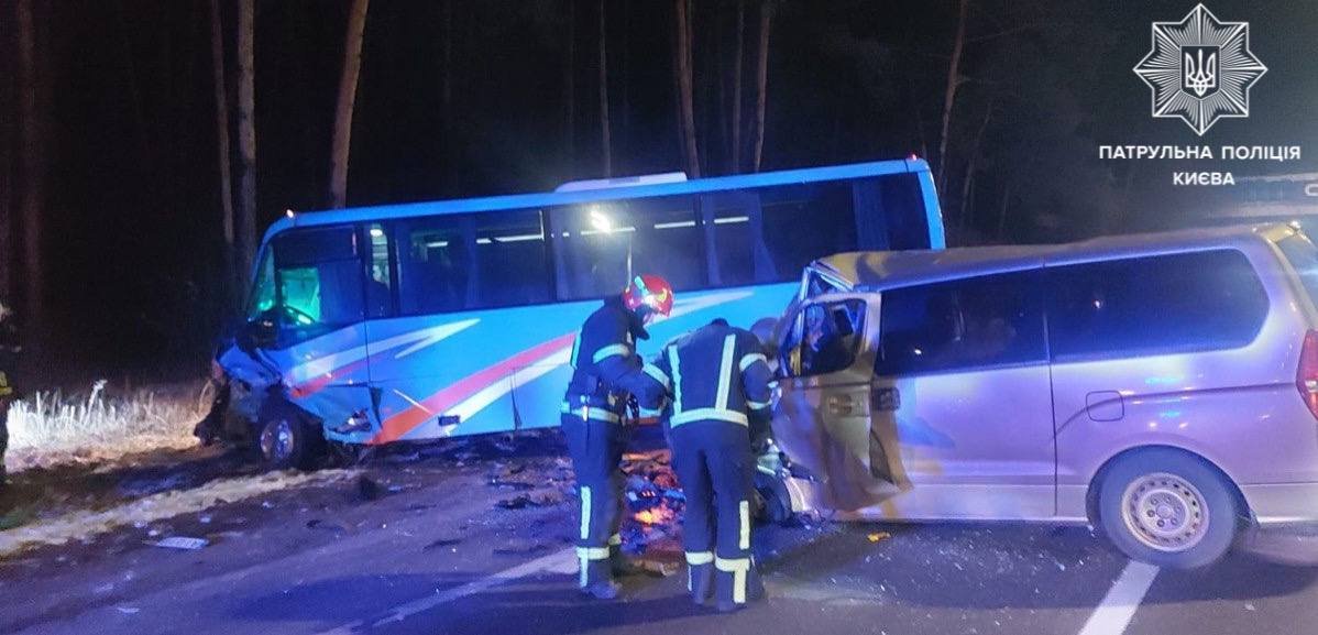 Під Києвом мінівен зіткнувся з автобусом, є загиблі та поранені