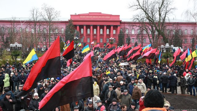 Після мітингу учасники акції рушили колоною по вулиці Володимирській, на чолі колони йде дружина Михаїла Саакашвілі Сандра. Учасники акції мають намір пройти вулицею Богдана Хмельницького, Хрещатиком до Майдану Незалежності, де проведуть мітинг на підтримку законопроекту про імпічмент президента, за відставку генпрокурора, а також на підтримку Національного антикорупційного бюро України.