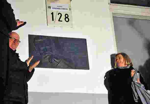Дошку розмістили на фасаді приміщення РАЦСу на бульварі названому на честь Вацлава Гавела у Солом’янському районі.
