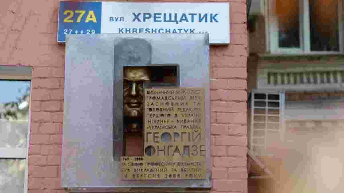 У середу, 16 вересня, у 20-ту річницю викрадення та вбивства журналіста Георгія Ґонґадзе, у Києві відкрили меморіальну дошку в пам’ять про нього. Її встановили на будівлі Національної спілки журналістів України на вул. Хрещатик, 27-а. Спроектував її скульптор Василь Маркуш. Встановлення та виготовлення меморіальної дошки своїм рішенням ініціювала Київська міська рада, повідомив під час відкриття директор департаменту культурної спадщини Київської міської державної адміністрації Олександр Никоряк, пише «Детектор медіа».