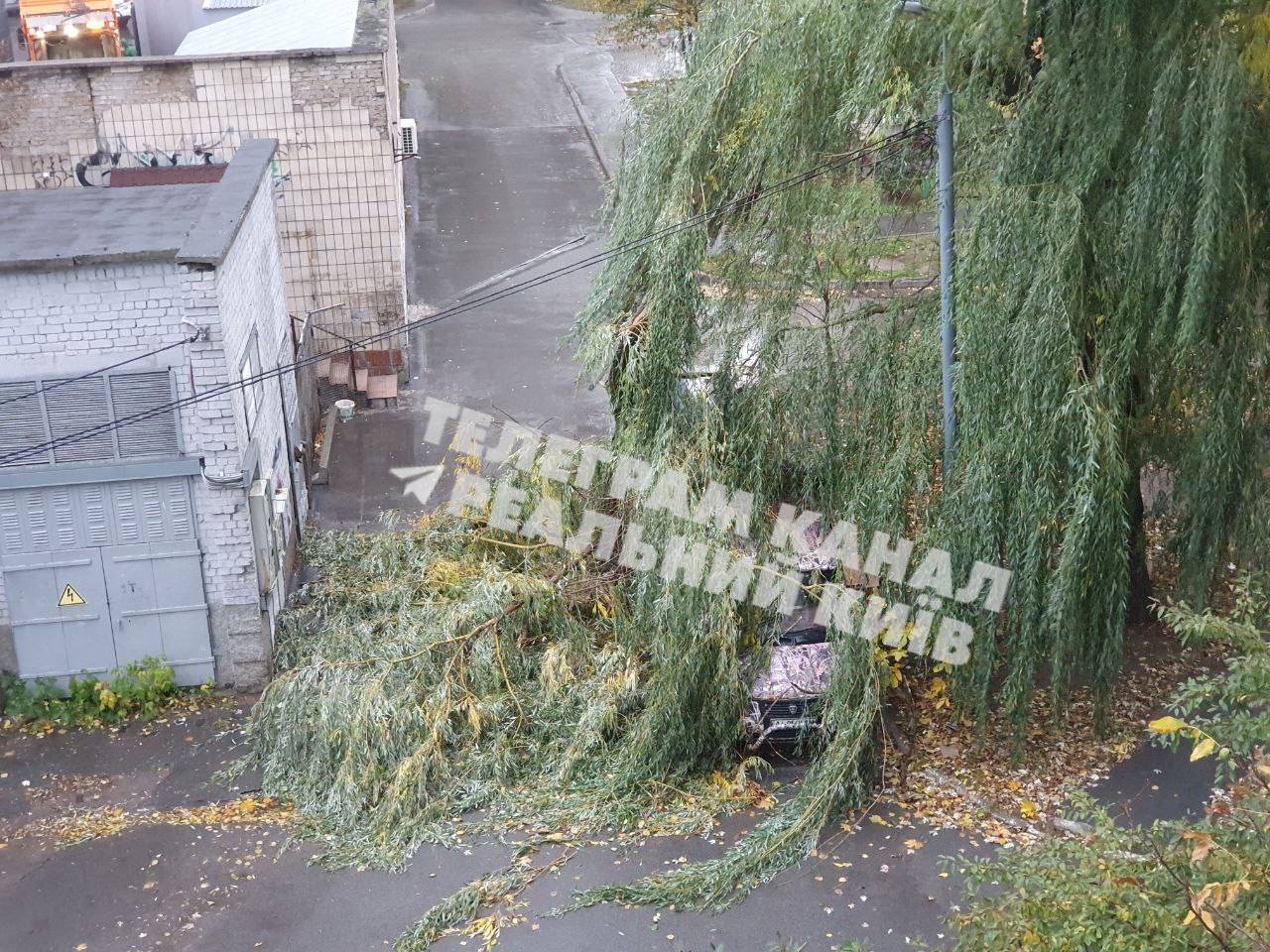 На Берестейському проспекті дерево впало на автомобіль. Людина, яка перебувала у транспортному засобі, від госпіталізації відмовилась.