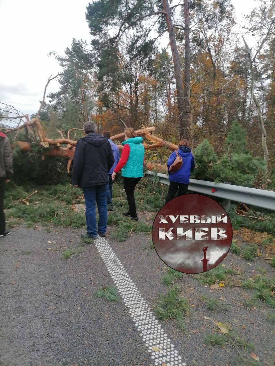 Негоду у Києві окремо прокоментувала патрульна поліція. Силовики попередили, що через повалення дерева на Брест-Литовському шосе в напрямку столиці частково ускладнено рух транспорту.