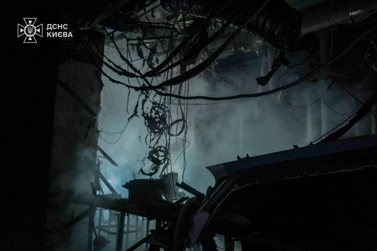 - Оболонському – внаслідок атаки сталося загоряння на шостому поверсі бізнес-центру;