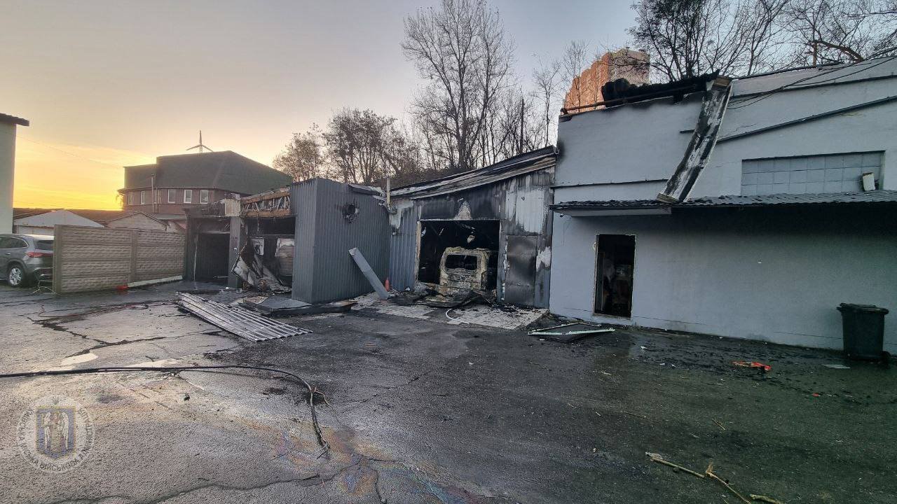 - Голосіївському – ударною хвилею пошкоджені вікна у житловому будинку, загорілося СТО;